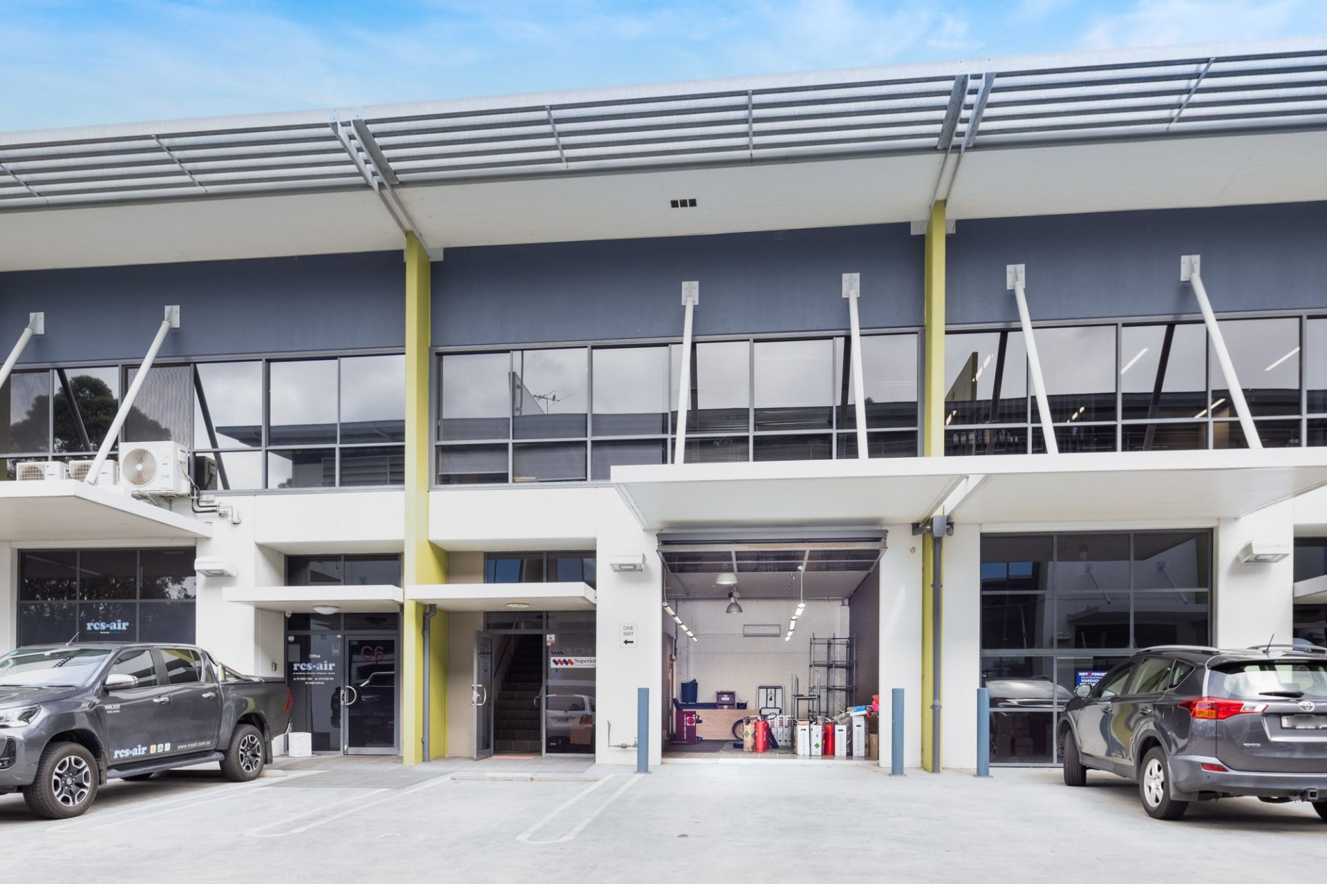 The stylish property is located in C Block and faces north, allowing it to be bathed in natural light from its stunning tinted widows and front warehouse tilted door. The top floor has reverse cycle air-conditioning and commands views out over to the beautiful bush valleys of Garigal National Park. The office boats 2 executive offices that sit on the edge of a large open planned area, suitable for 6 or more staff.