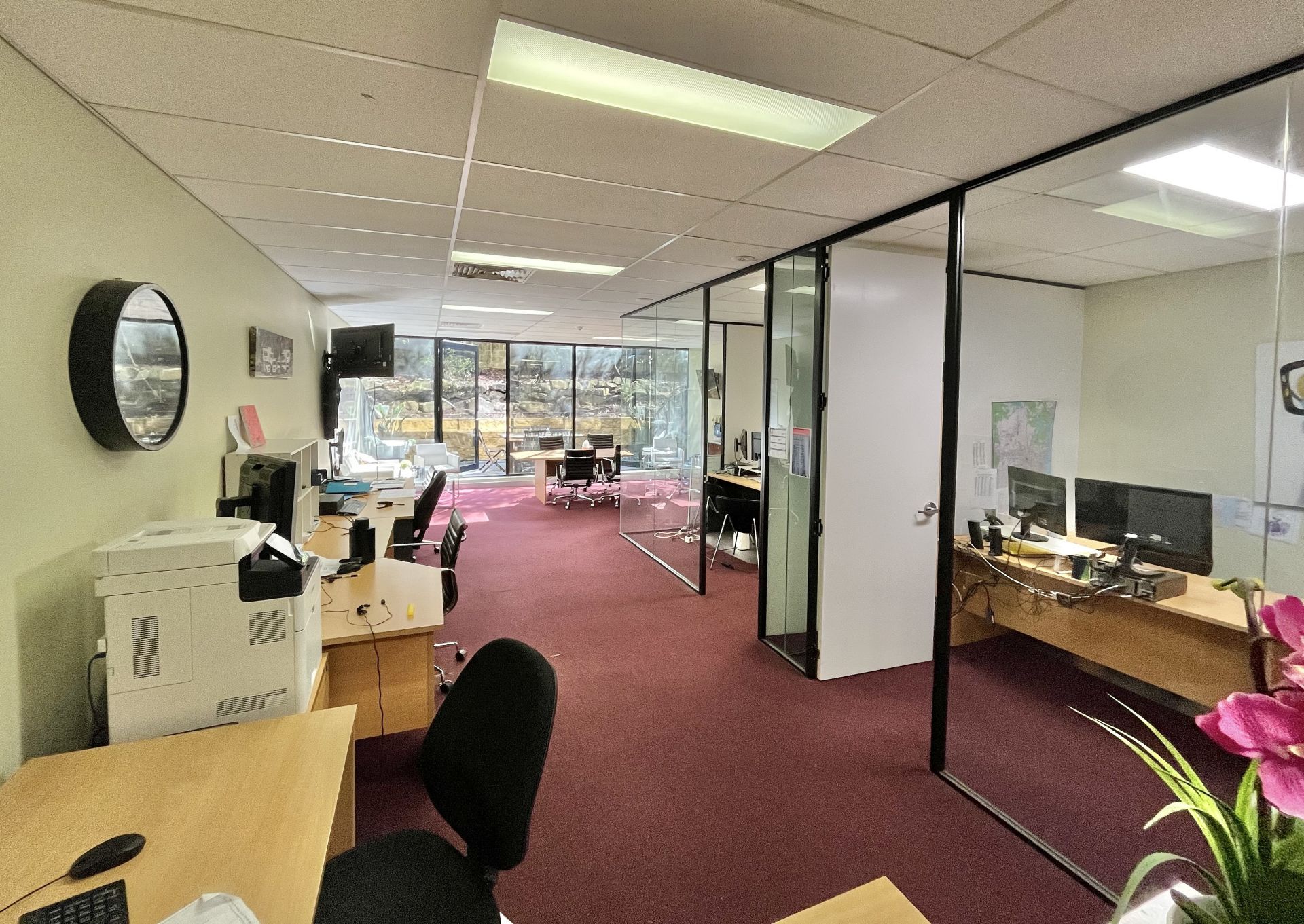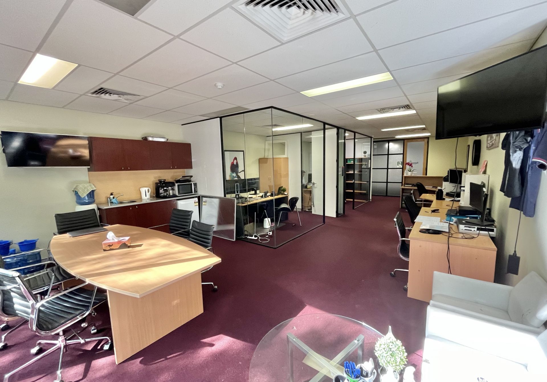The suite offers a generous 72sqm of internal space complemented by an 18sqm private terrace, creating a flexible working environment with excellent natural light. The layout includes two glass partitioned offices, a versatile fitout and an internal kitchenette and air conditioning for comfort.
