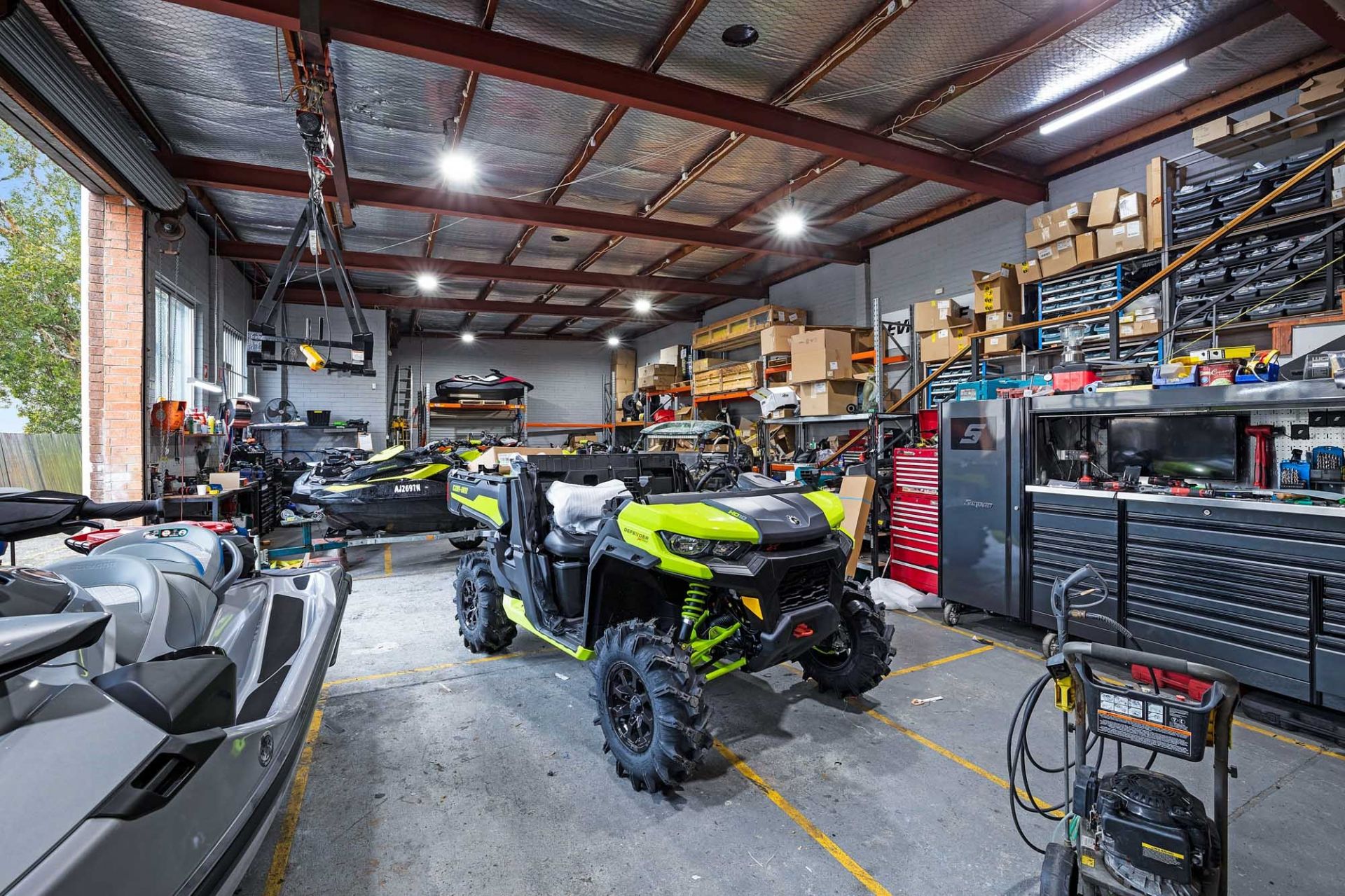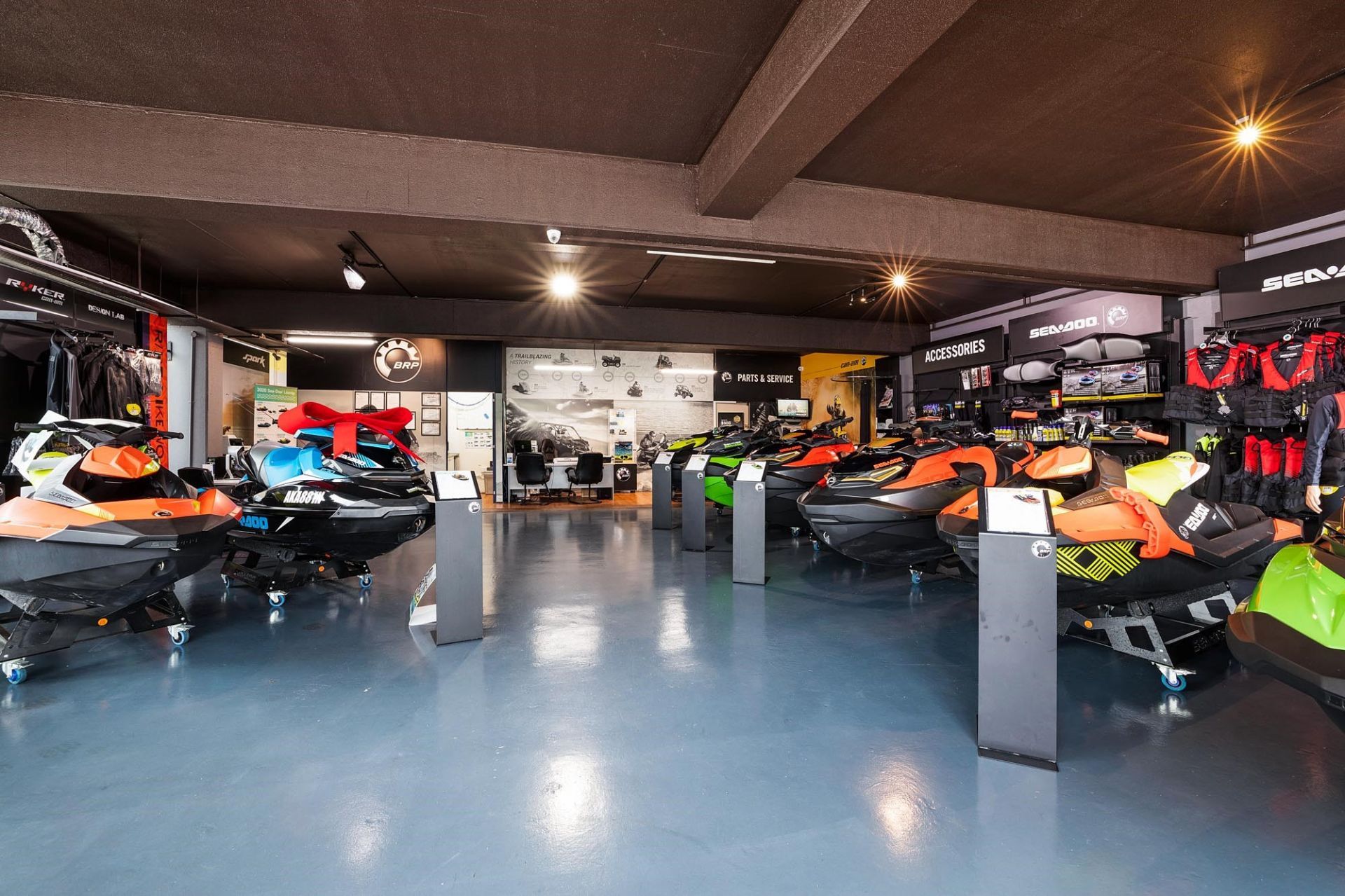 * Downstairs - High clearance showroom/warehouse with 2 roller doors, perfect for additional showroom, workshop or storage areas