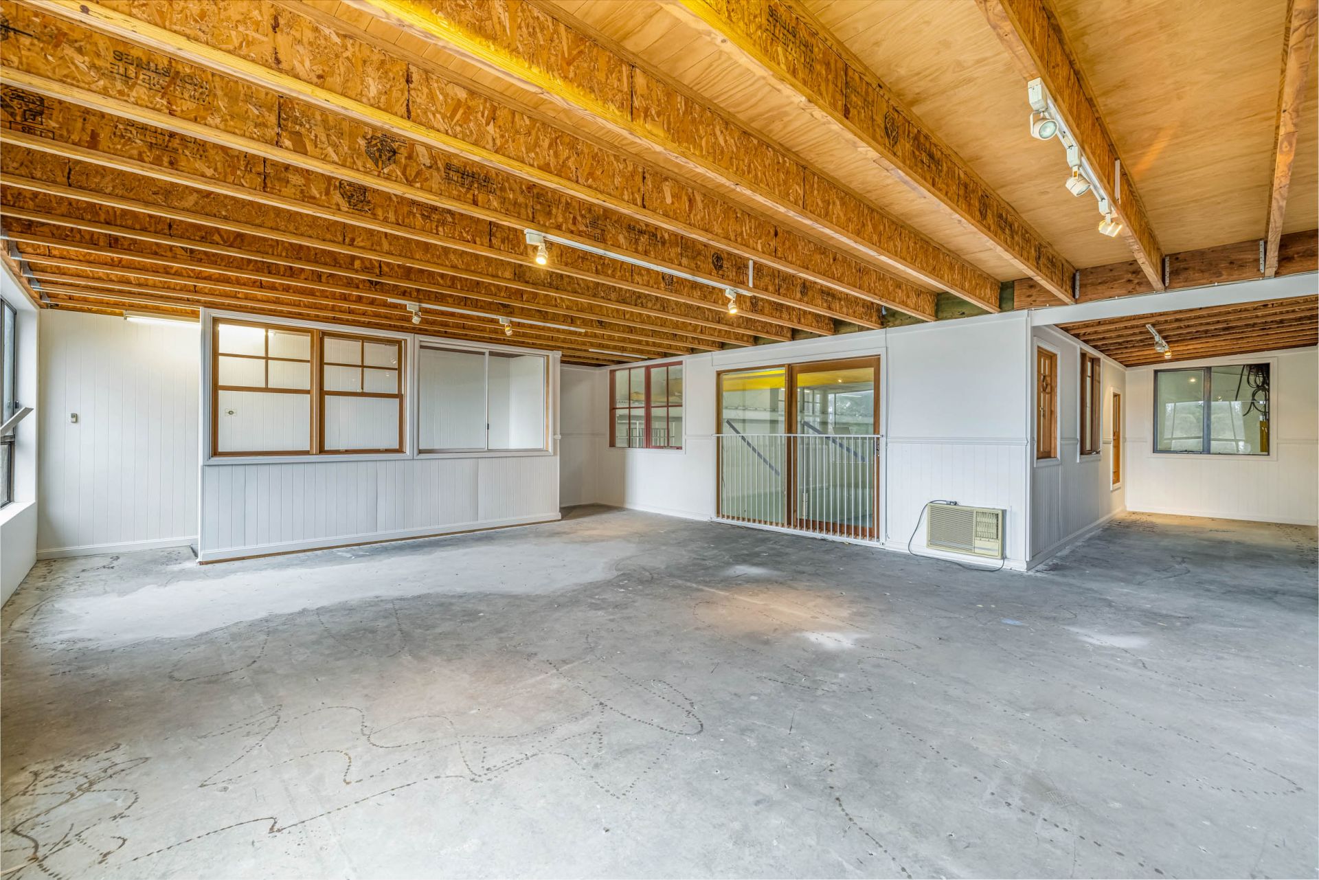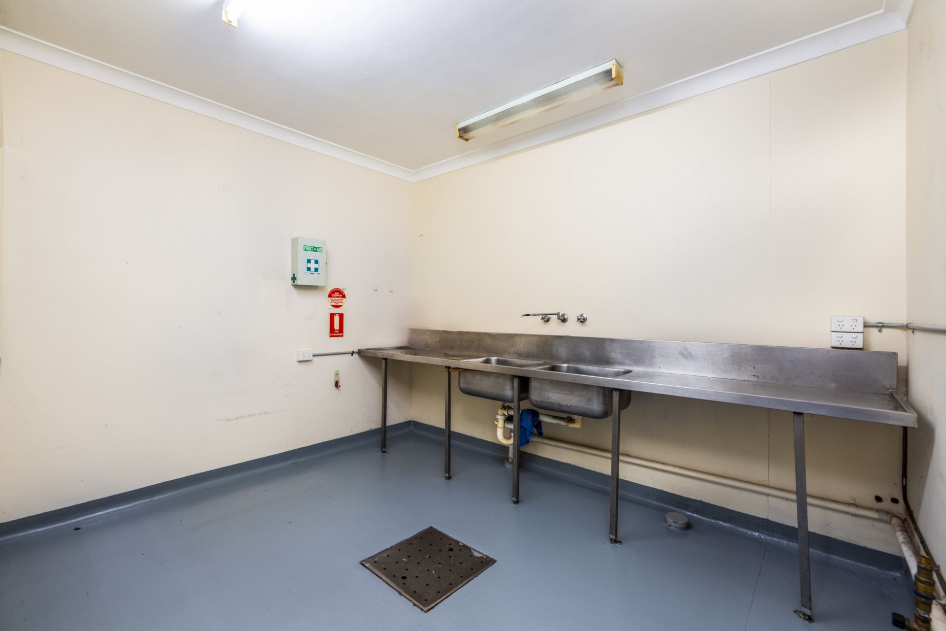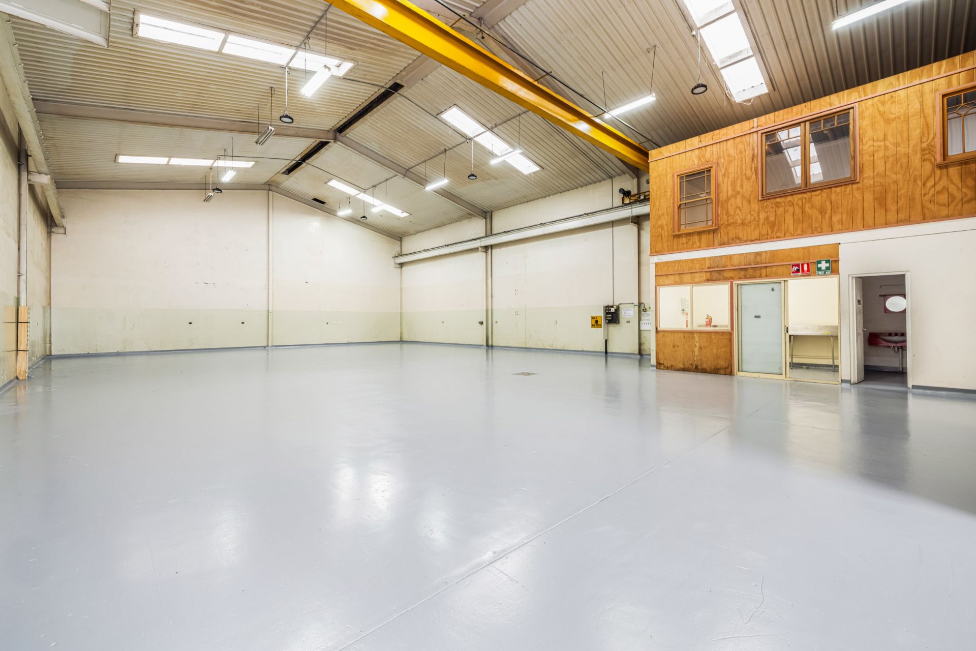 * Freshly painted warehouse floor