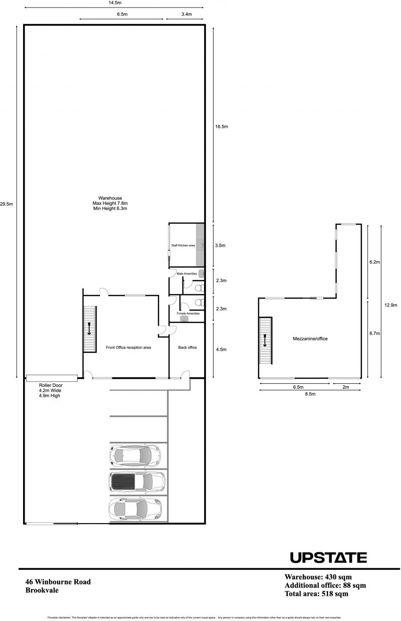 * Total building area: 518sqm, including 88sqm of mezzanine/office