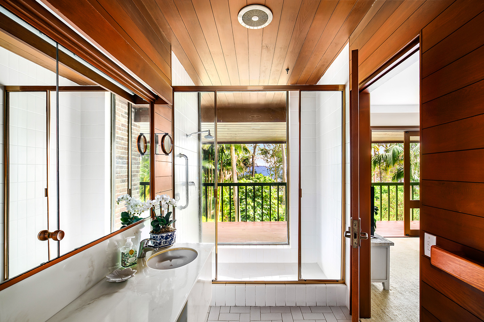 – Two master suites open to balcony basking in tree-filtered water views