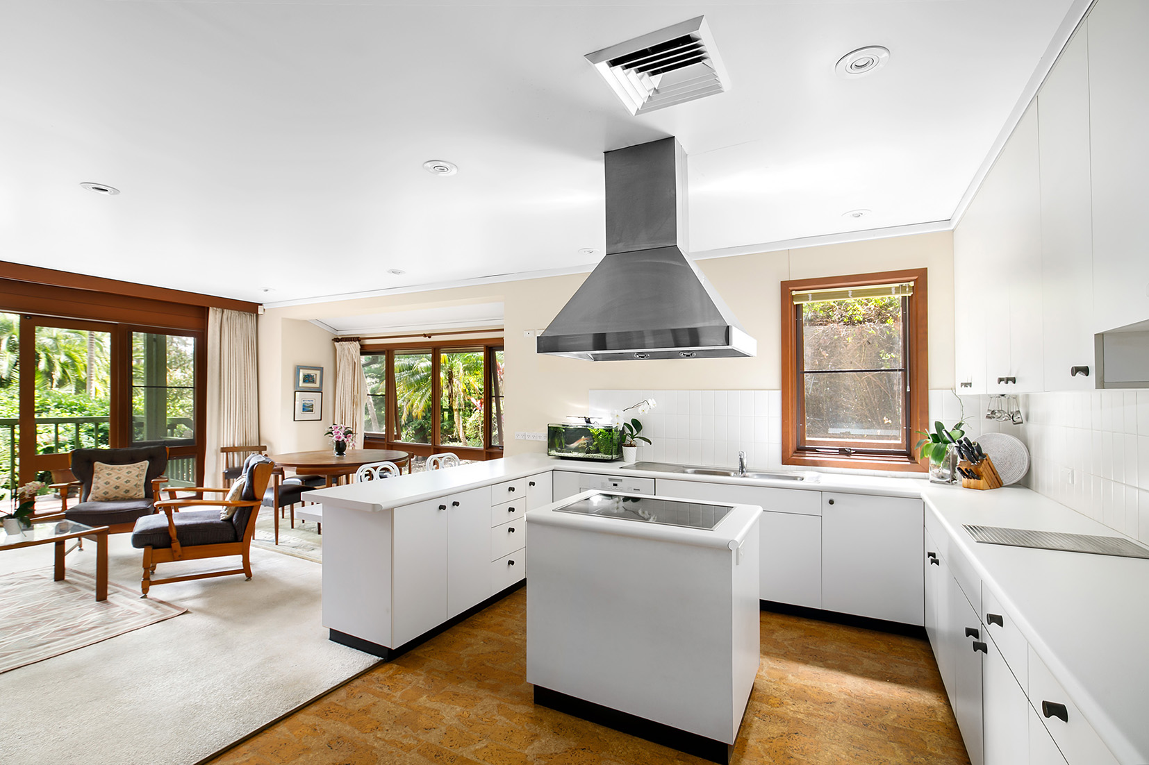 – Well-maintained island kitchen, casual family living area, entertainers deck