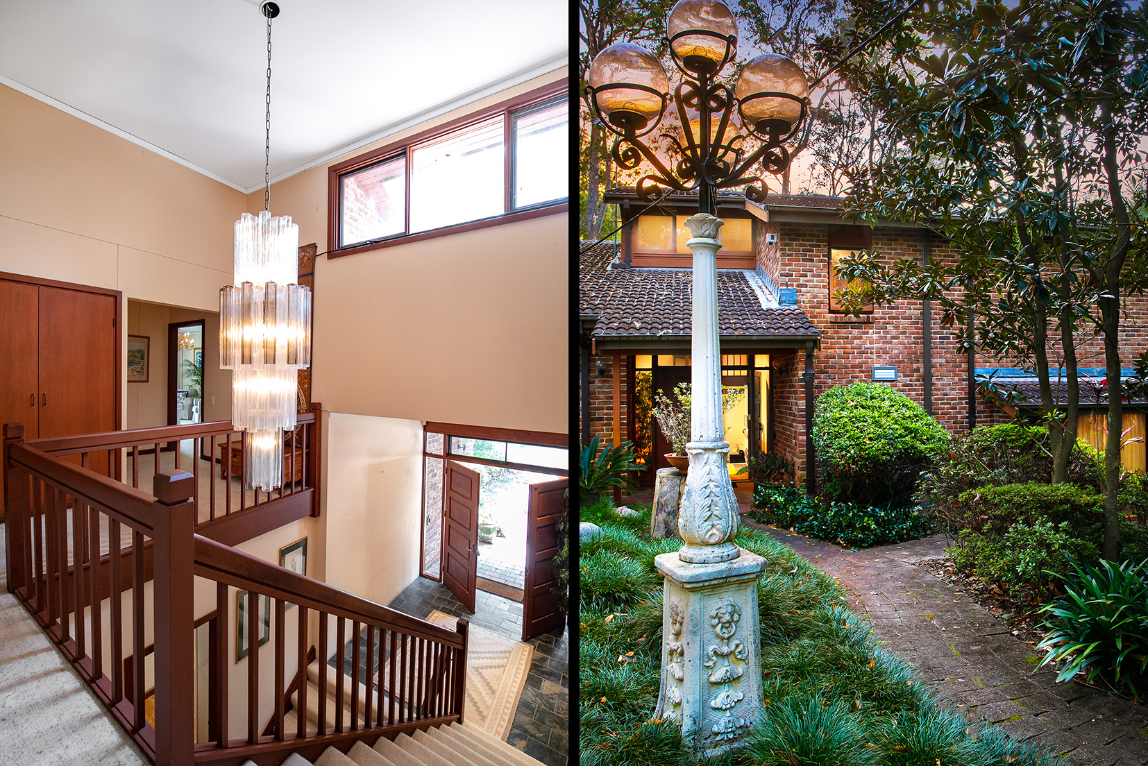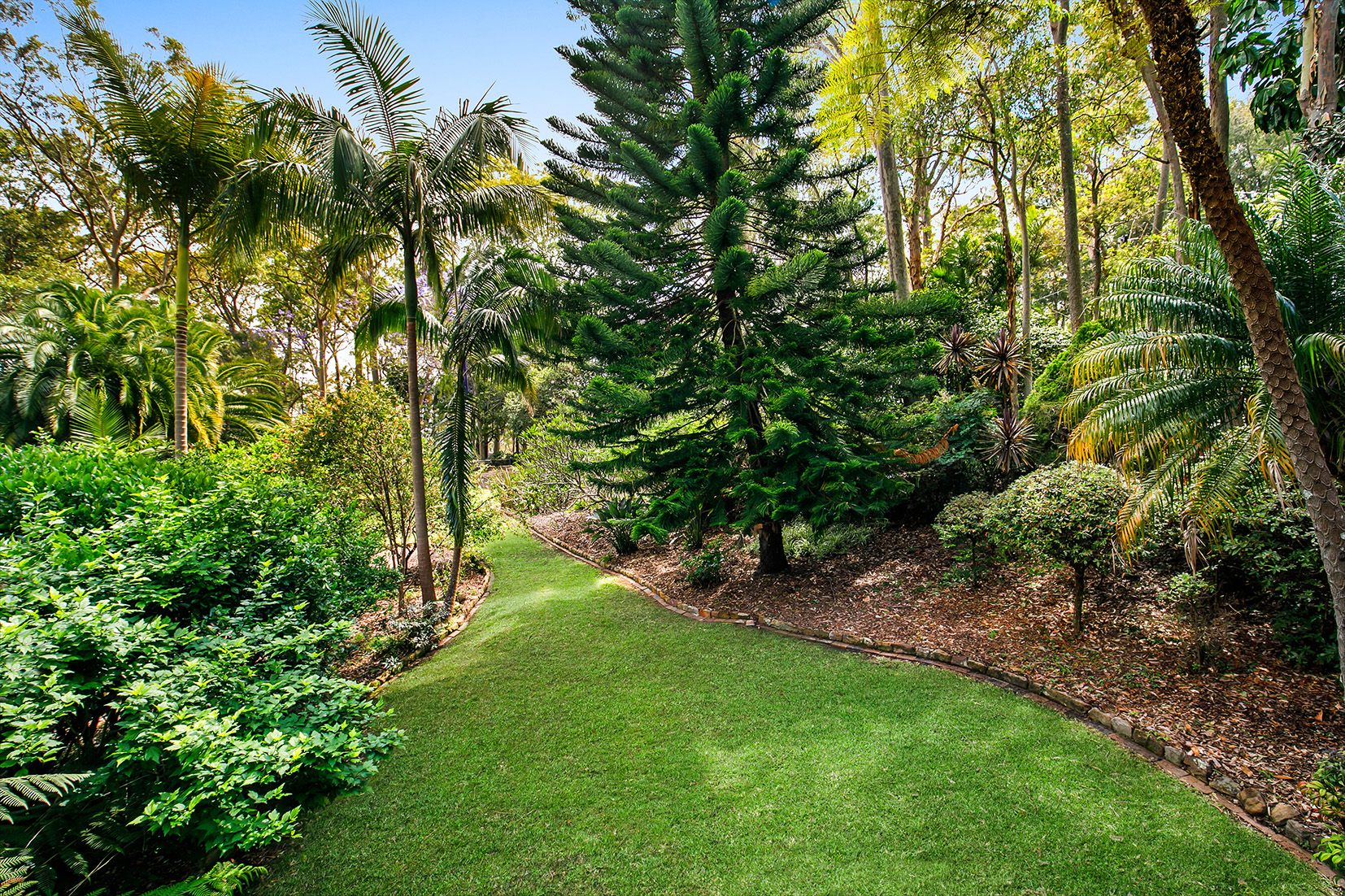 – Grand driveway through established gardens creates an instant impression