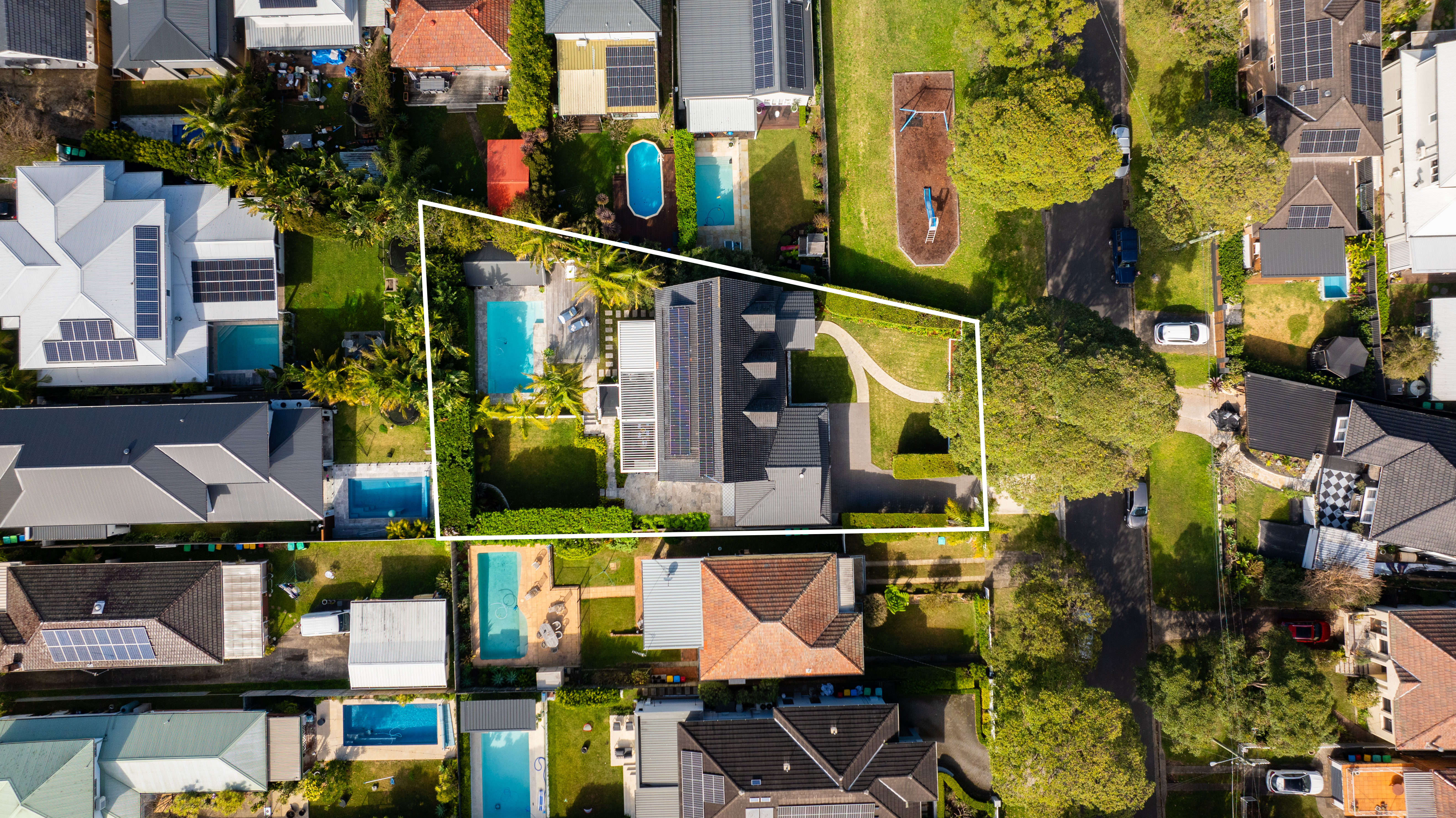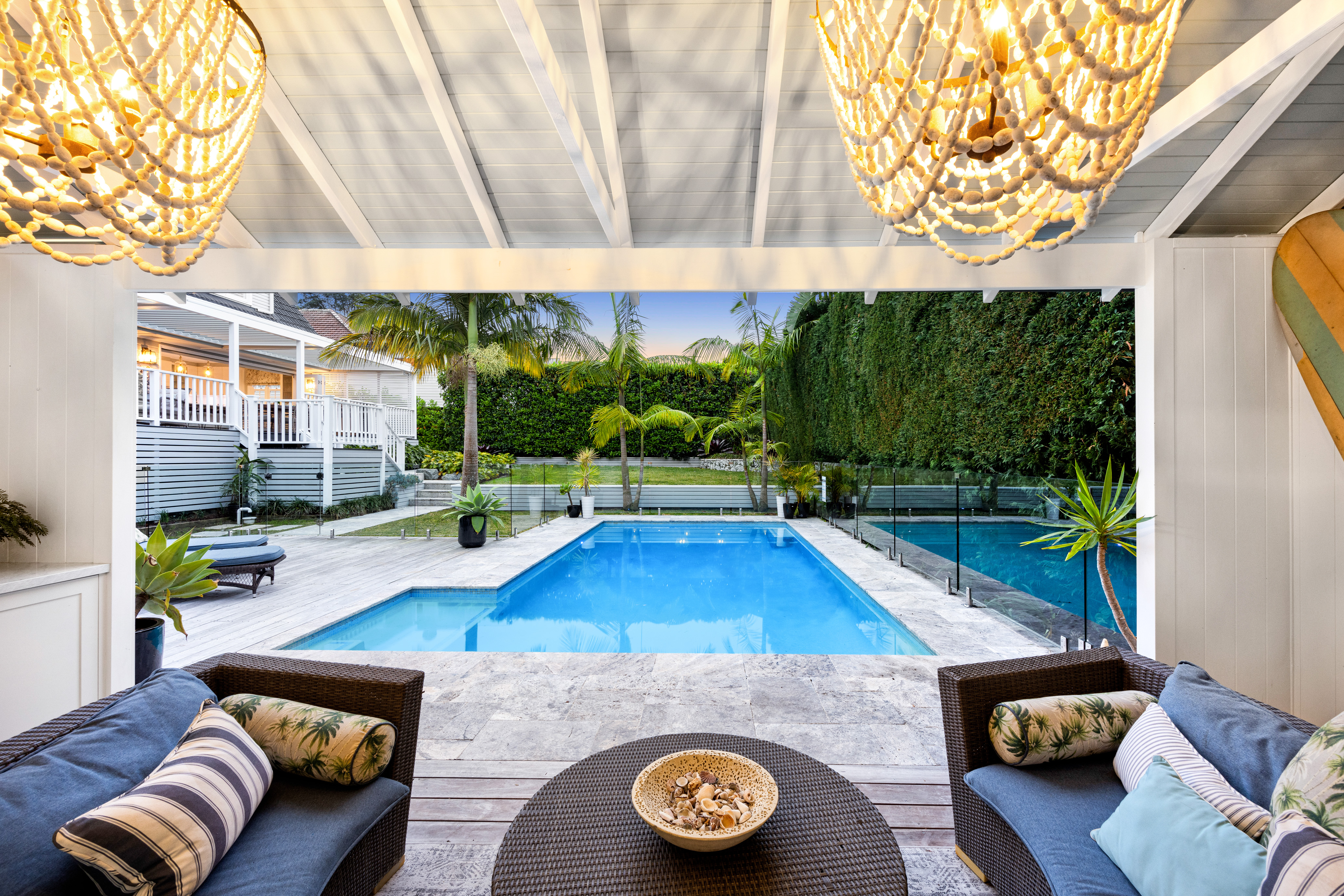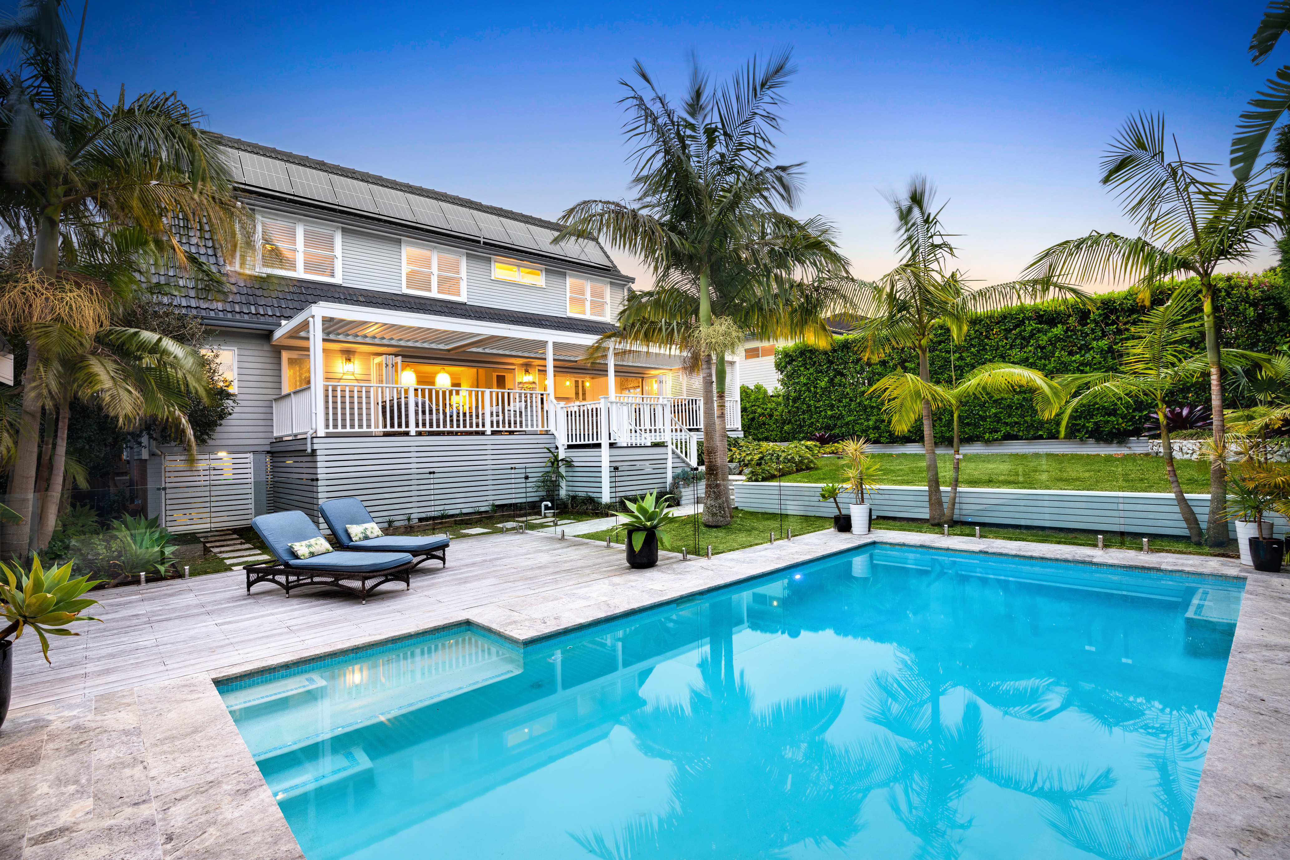 • Private leaf-screened rear lawn and pool with Travertine surround and sundeck