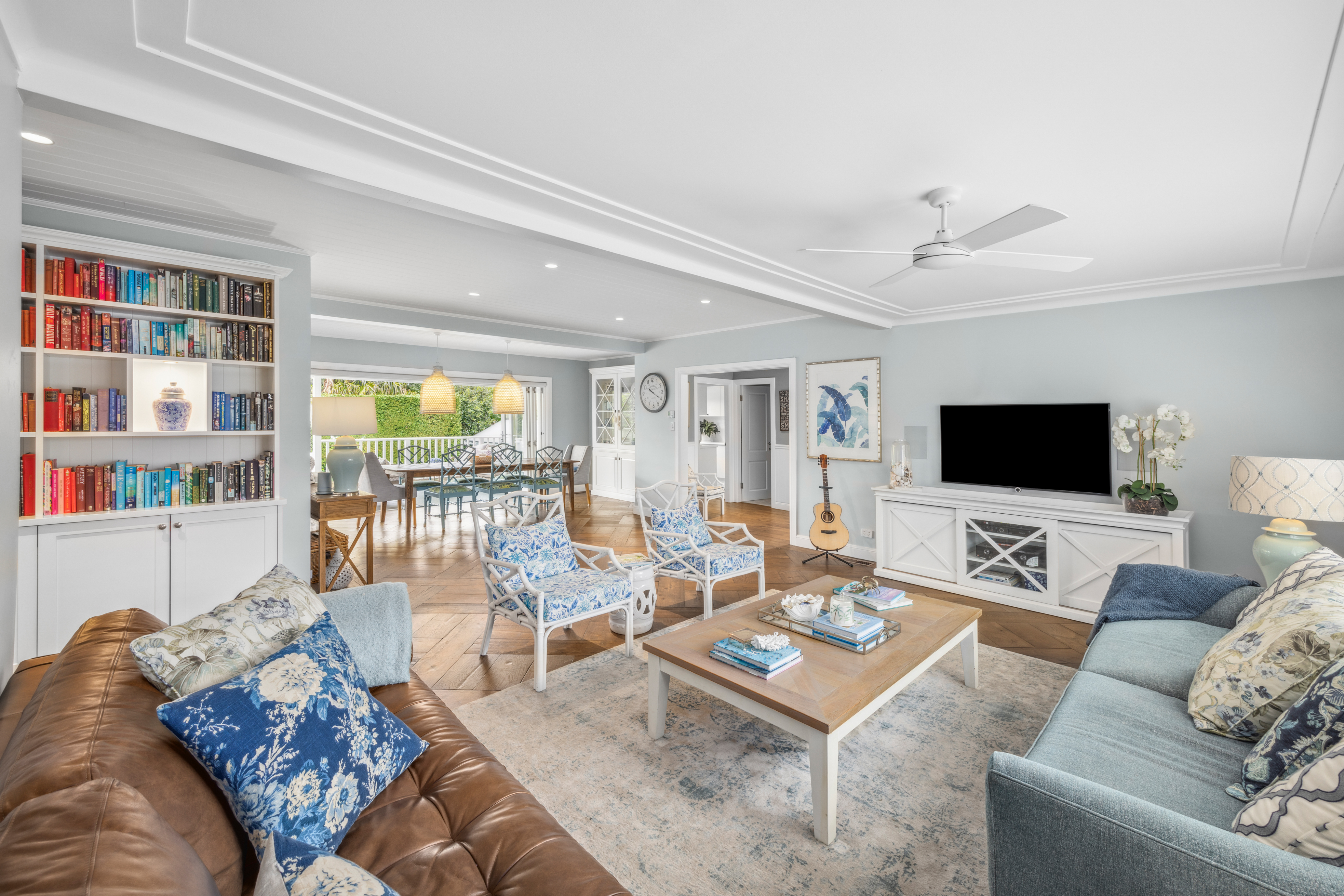 • Generous living space with a library adjoins a giant dining room by the kitchen