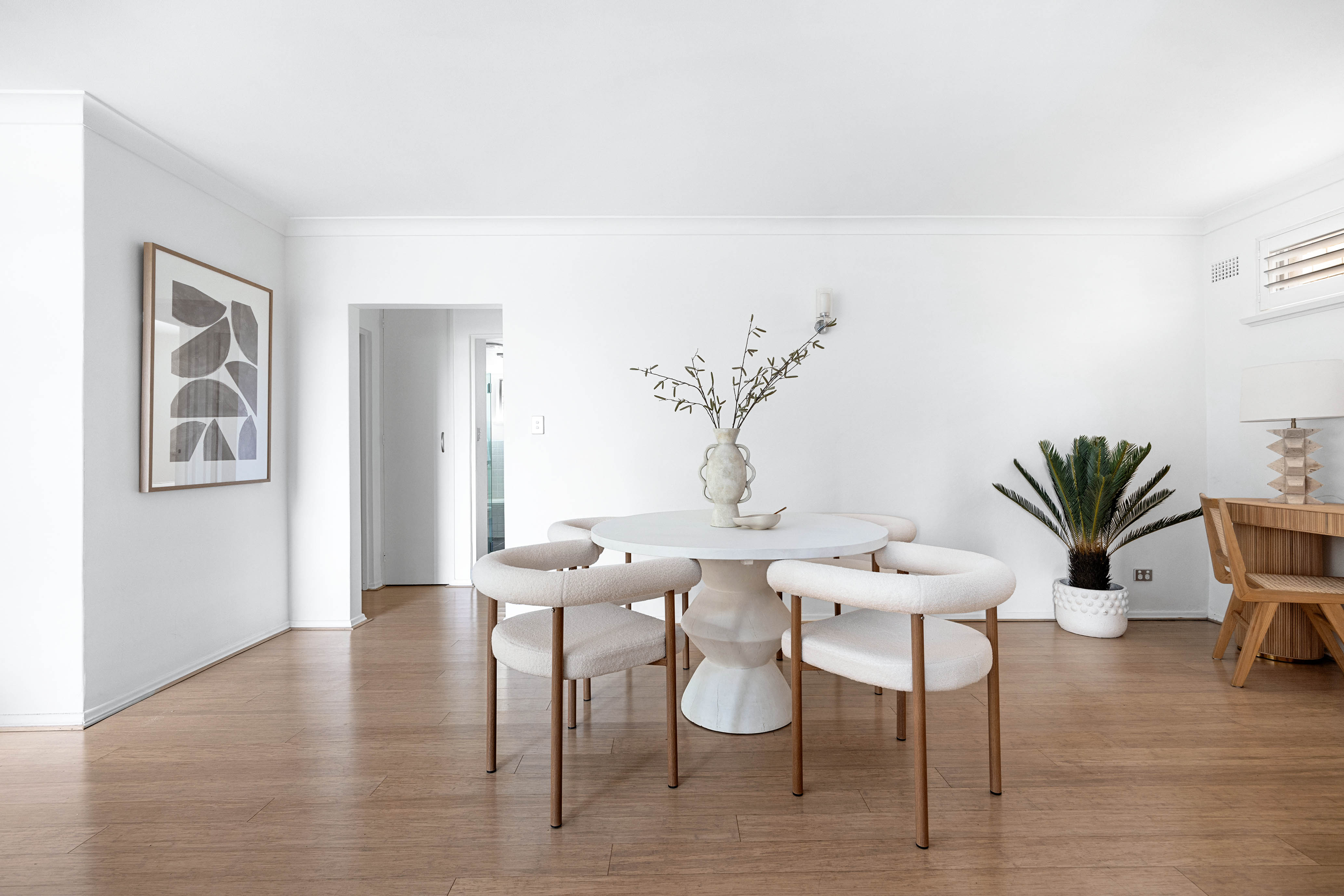 This stylish two-bedroom apartment, situated in the ‘Gainsborough’ security building, boasts contemporary designer interiors, tree-filtered harbor views, and a fantastic location just a stroll away from the heart of Manly. The ground floor setting enhances the appeal, providing a sense of sanctuary with lush greenery all around. The streamlined interiors and thoughtful layout ensure comfortable living, complemented by clean lines and quality finishes that define this stylish home.