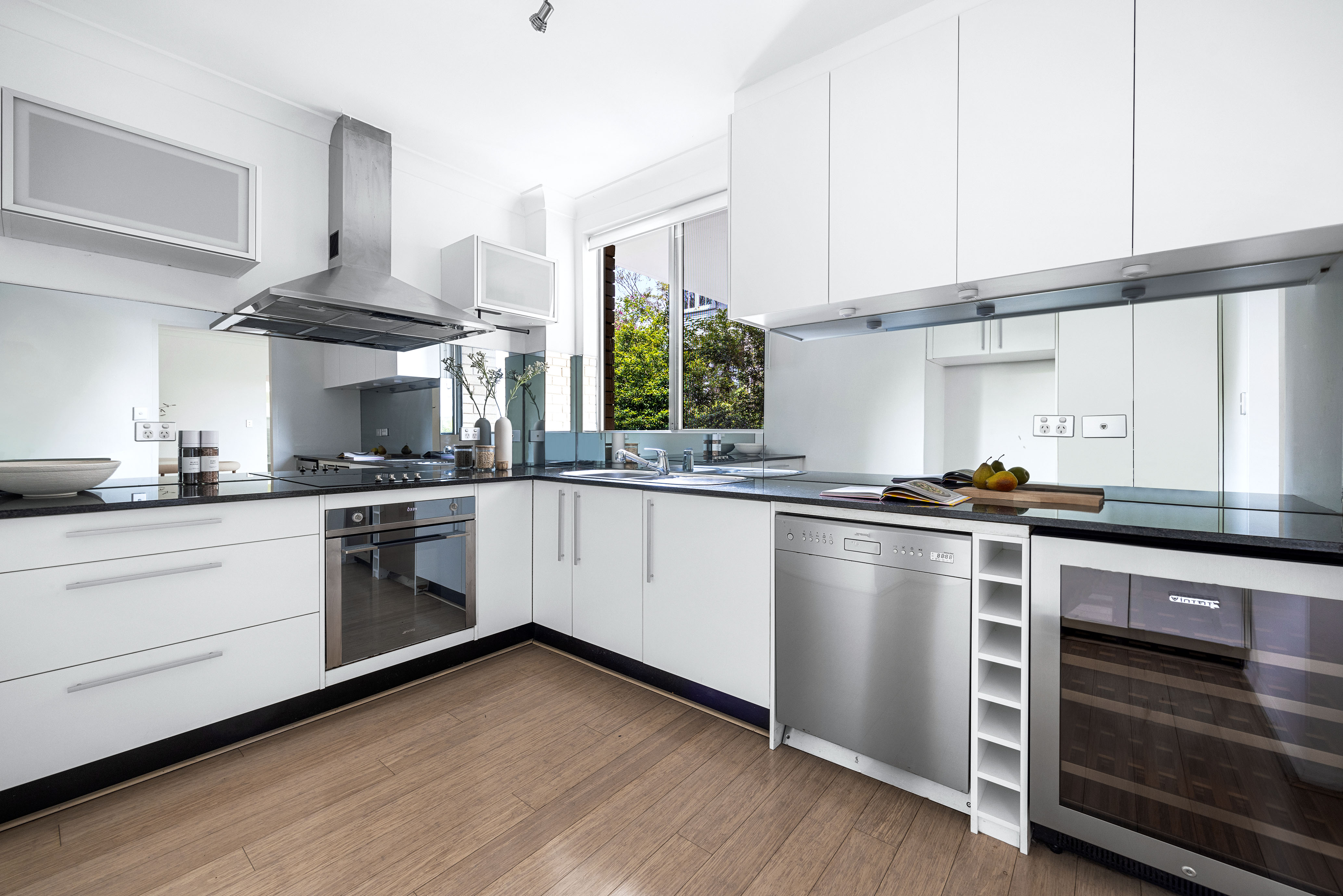 – Spacious stone finished kitchen with stainless steel appliances, Vintec wine fridge