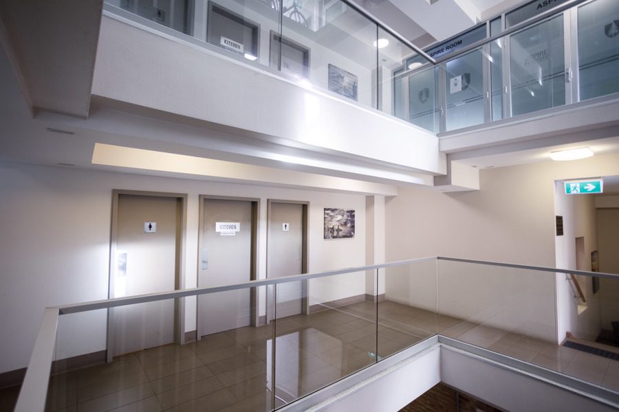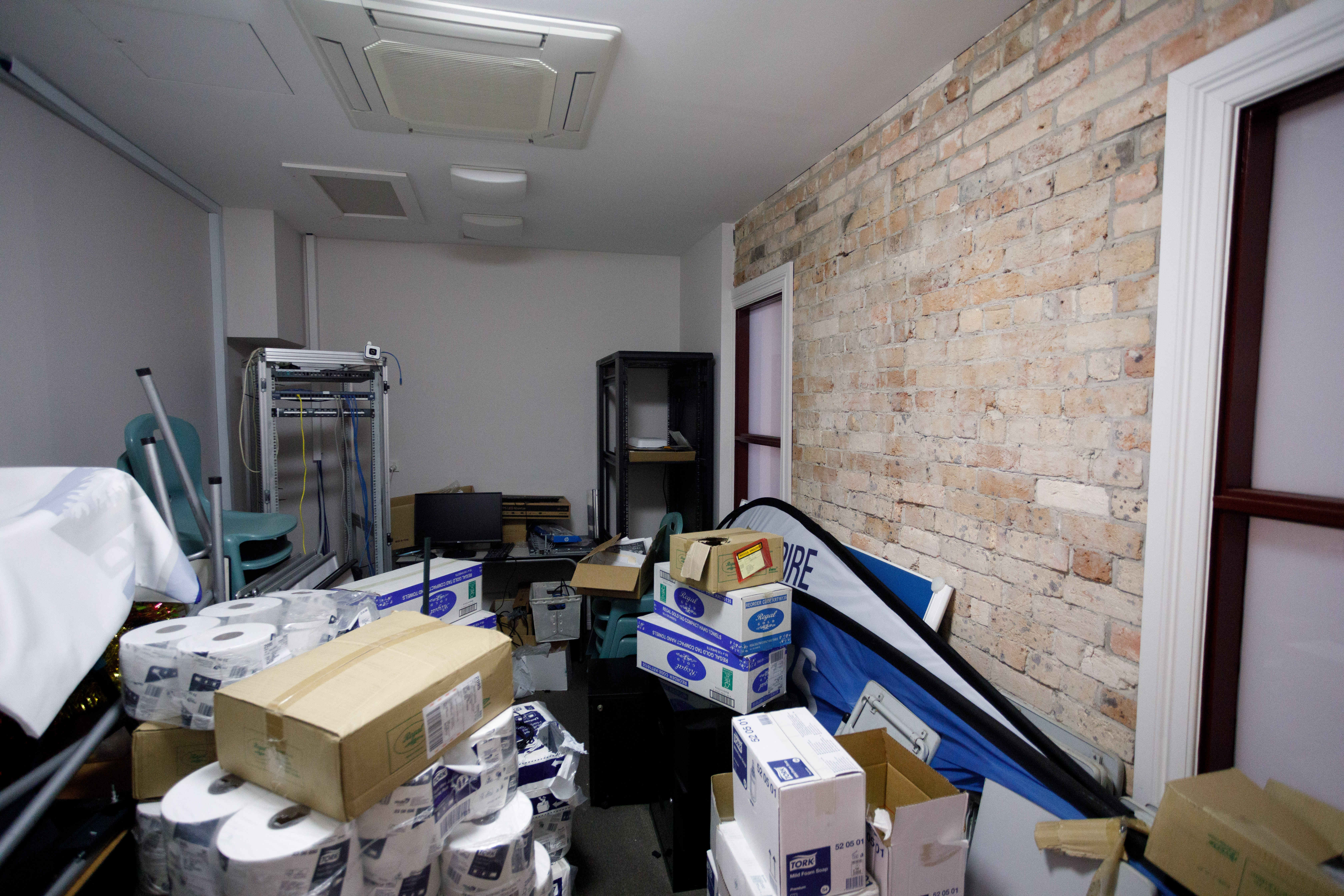 The space is designed around an open-air light well and is complete with a private use balcony, bathrooms, and a kitchenette. It also offers secure lift access and a shower room.