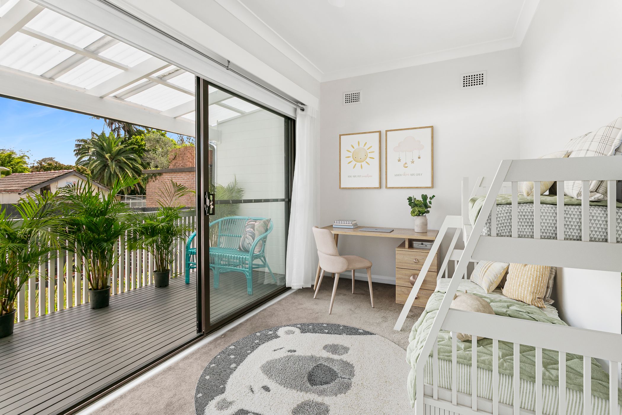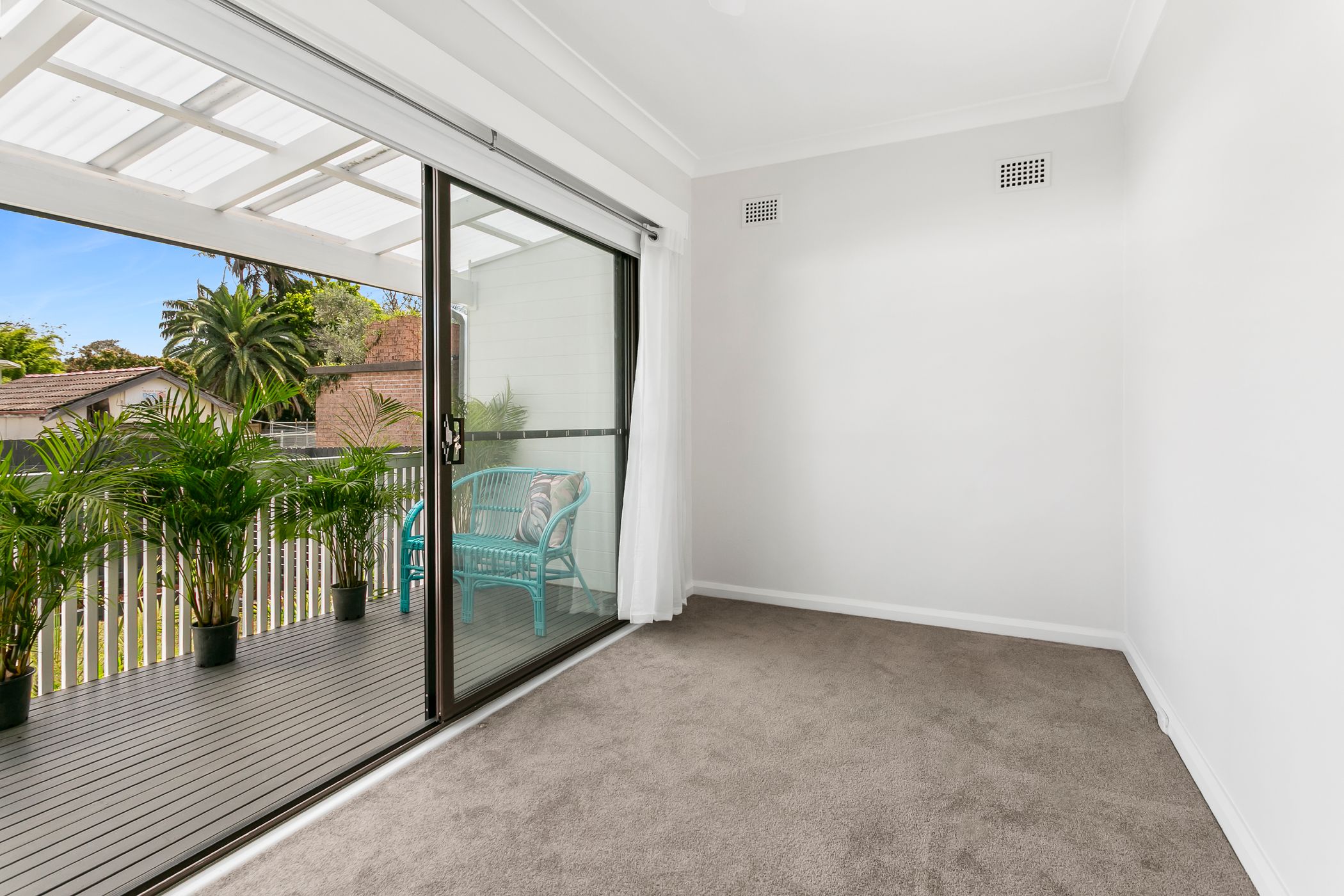 – Private rear deck flowing from the third bedroom to the enclosed garden