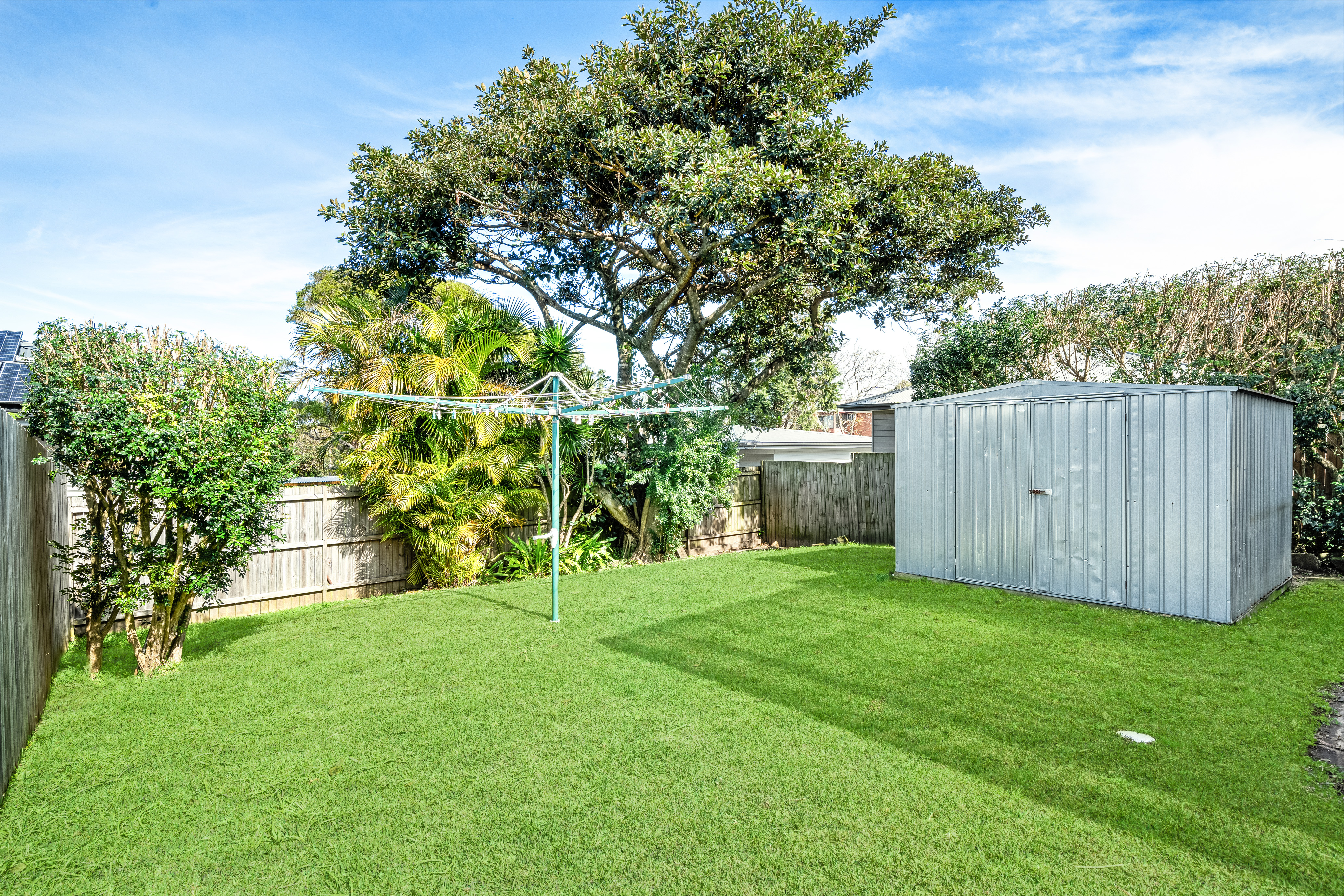 – Low maintenance lawns and leafy garden, ideal storage shed