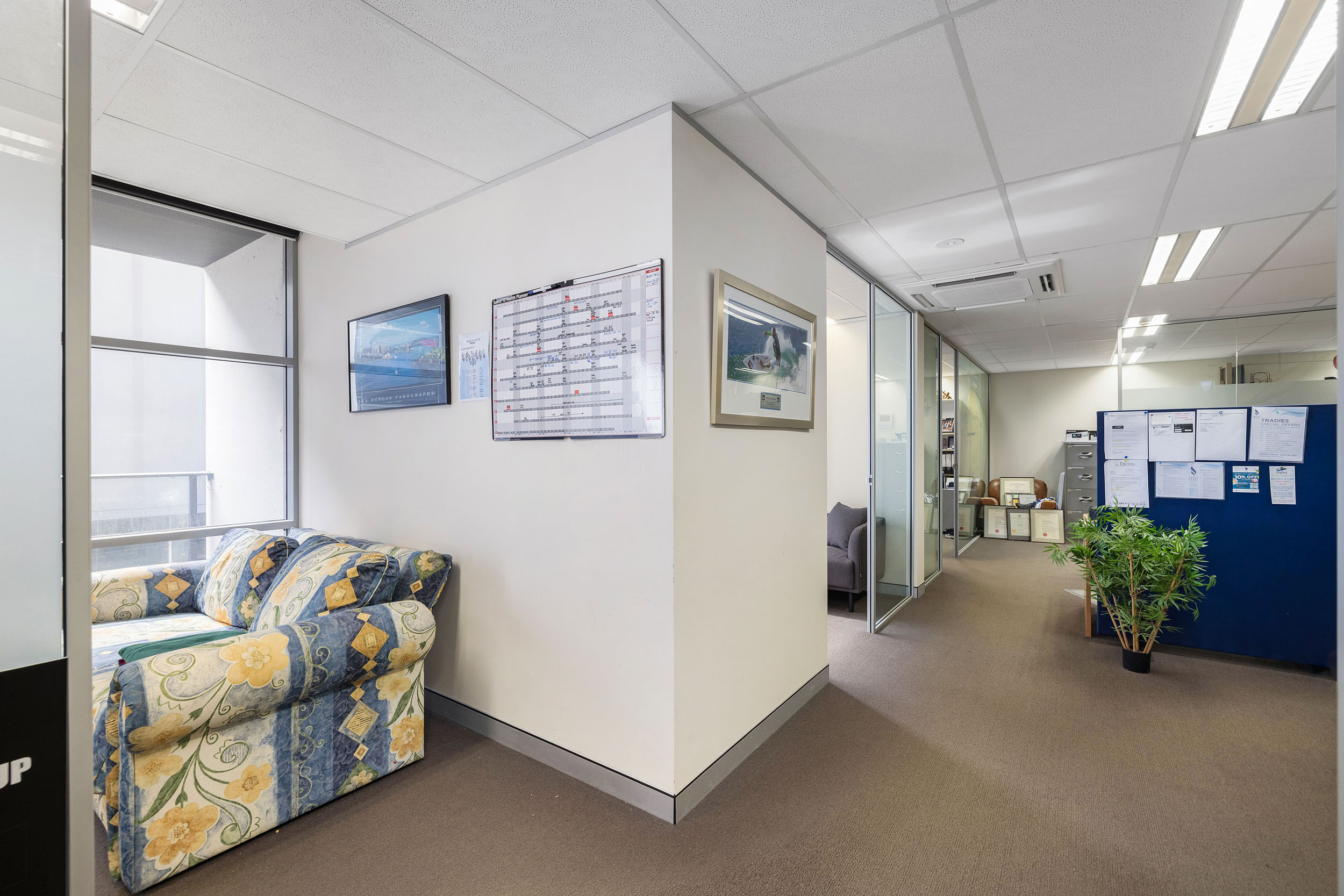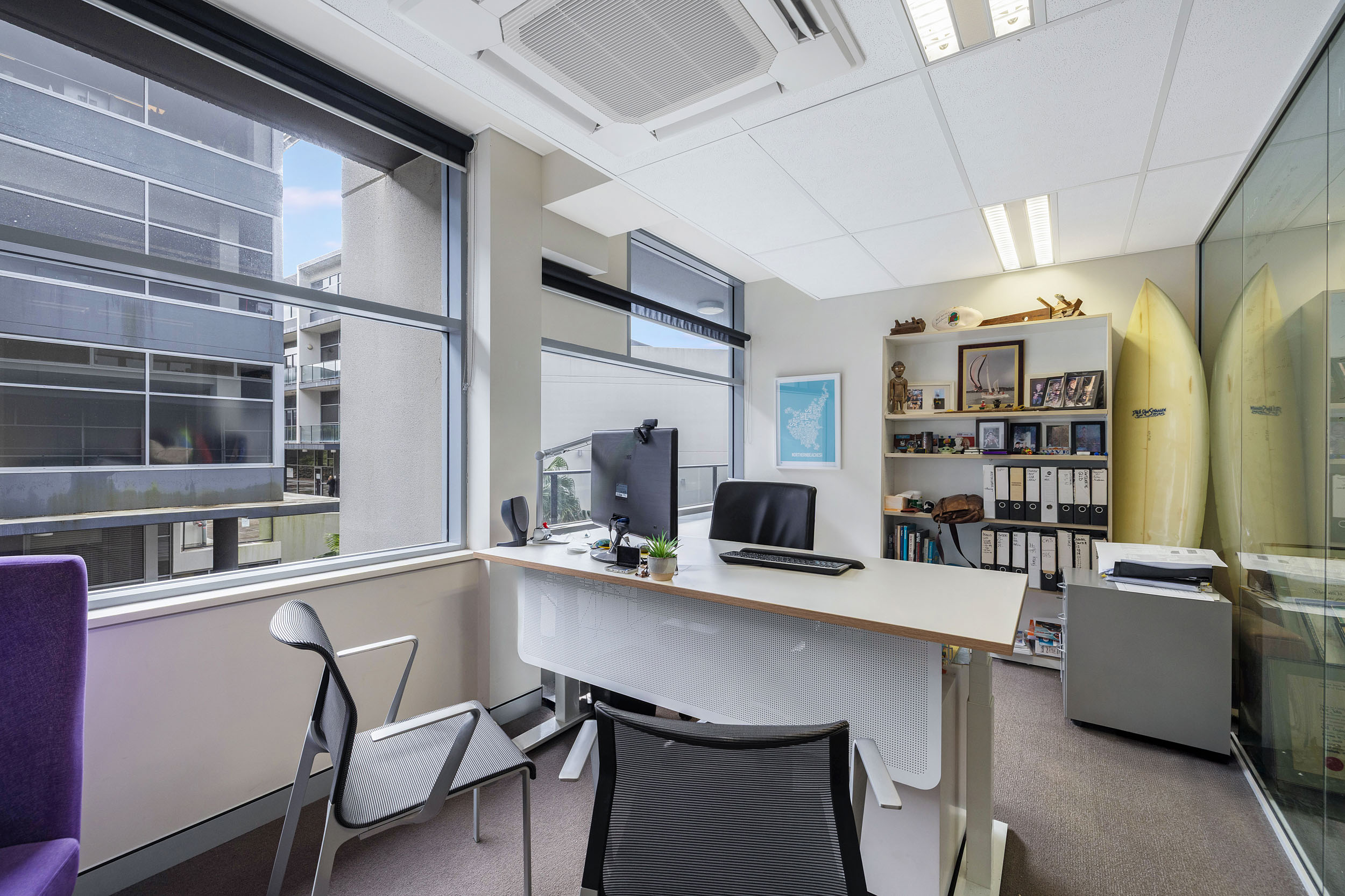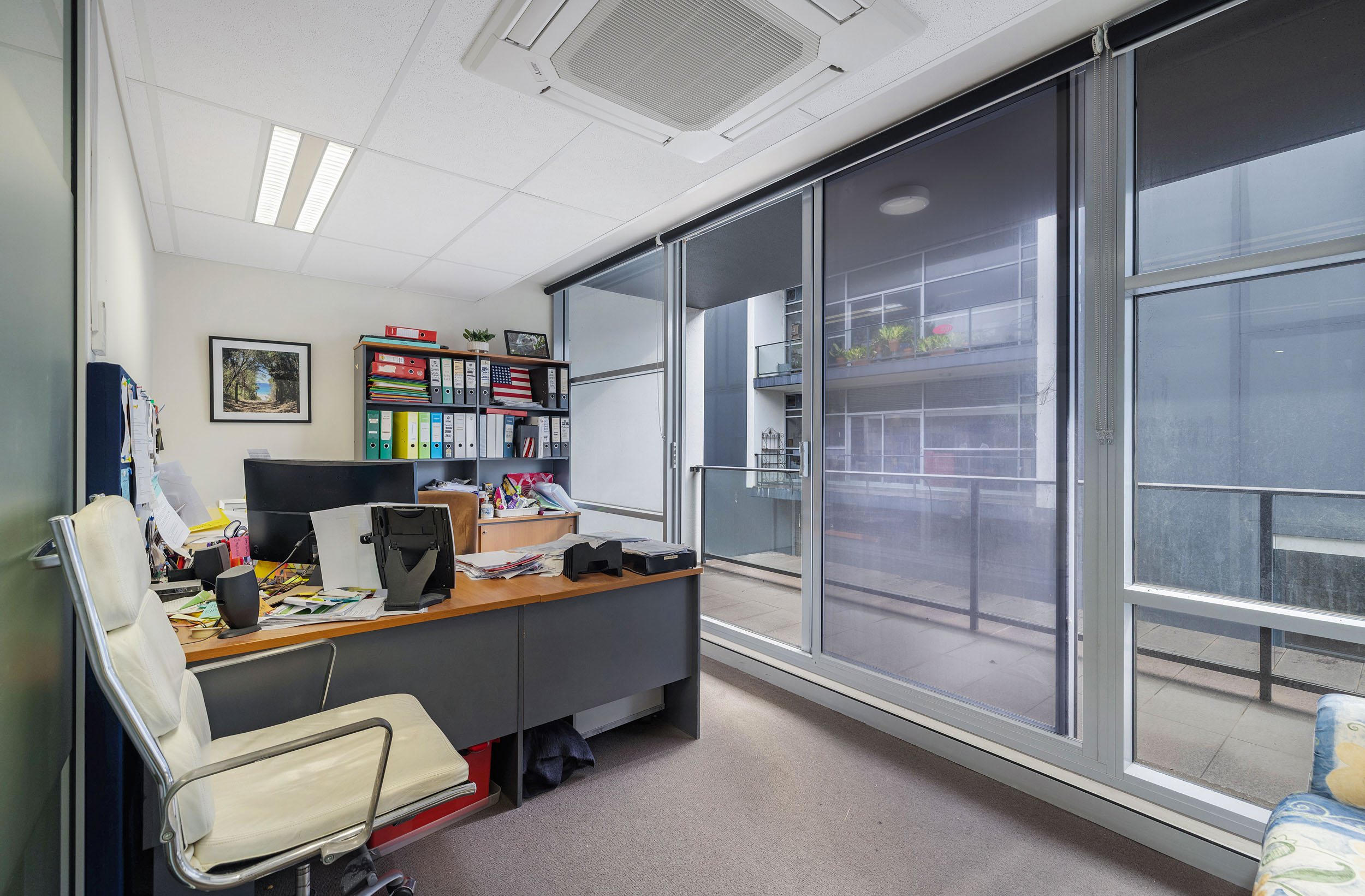 Tenants or staff will appreciate the ability to reduce energy costs by switching off the air-conditioning and enjoying fresh air through sliding glass doors that lead to a private balcony, perfect for lunch breaks or informal meetings. Surrounded by lush, landscaped greenery, this is a workspace designed to enhance productivity, well-being, and long-term value.