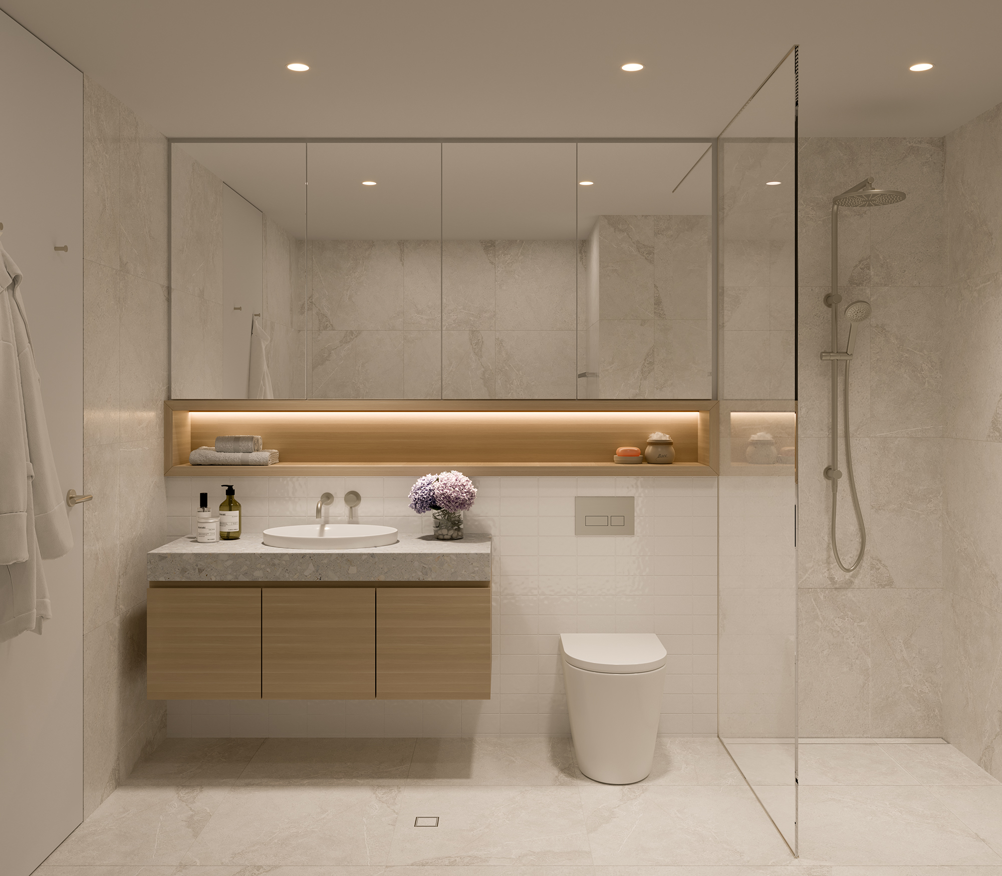 – Modern bathroom with integrated laundry