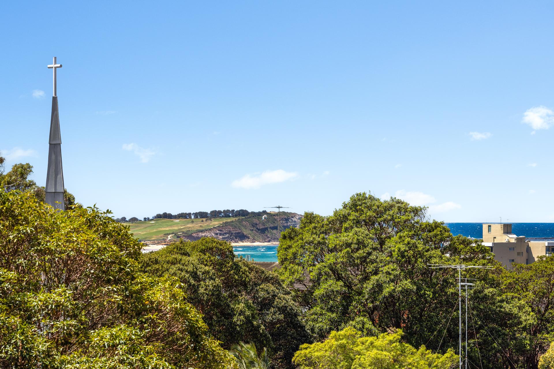 – Views across treetops to Long Reef Headland and ocean