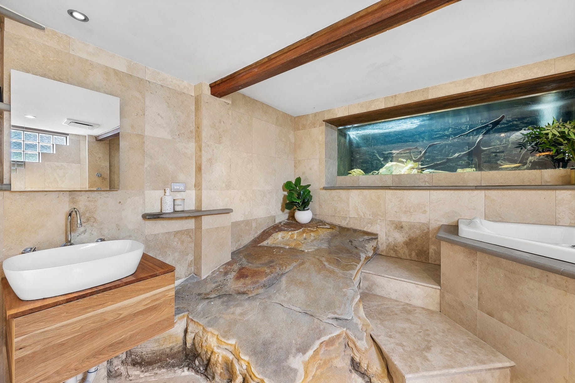 – Main bedroom with wet bar, ensuite with built-in fish tank, and second living area