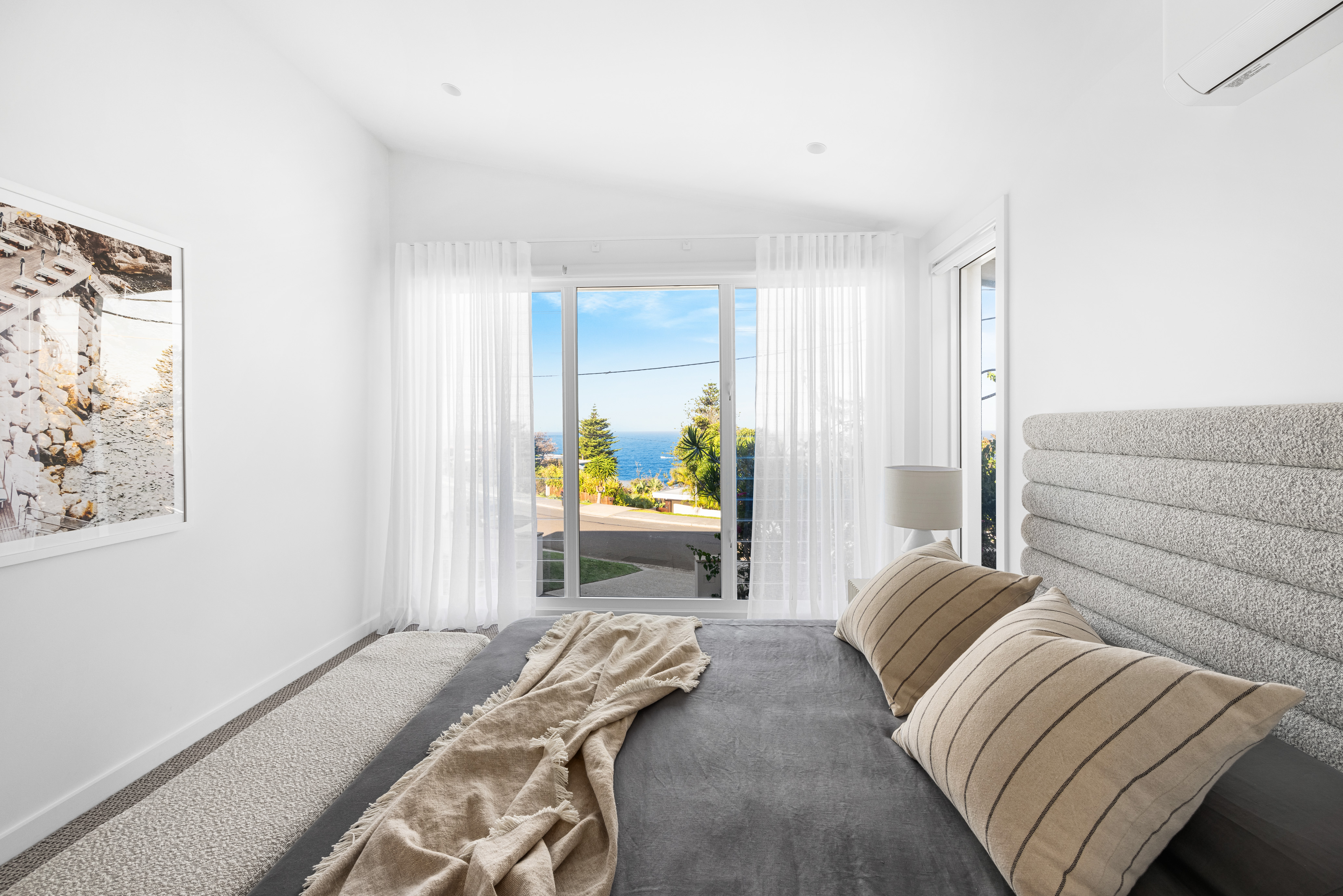 – Bedroom 4 with ocean views, ensuite, and direct access to the deck, spa, and sauna