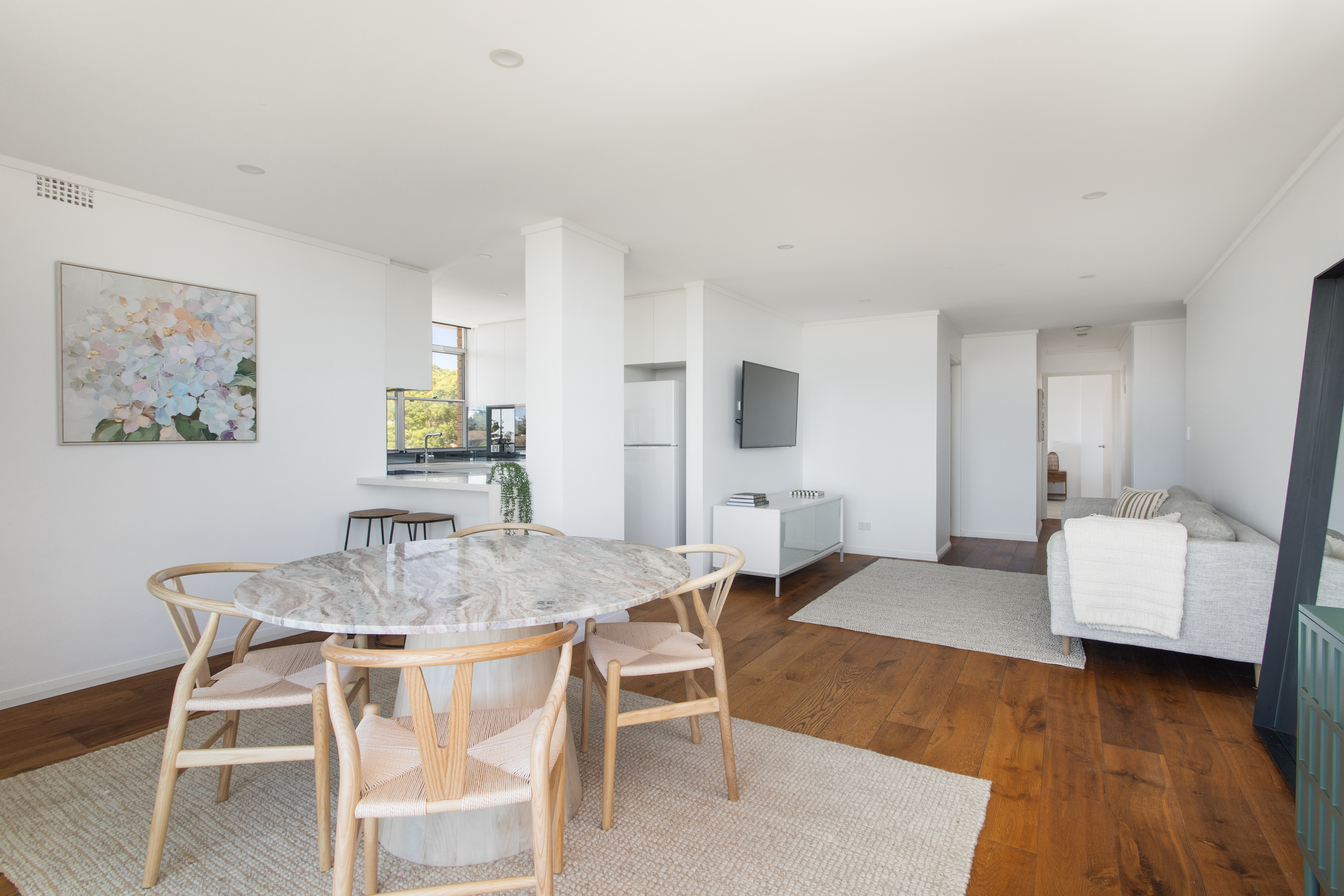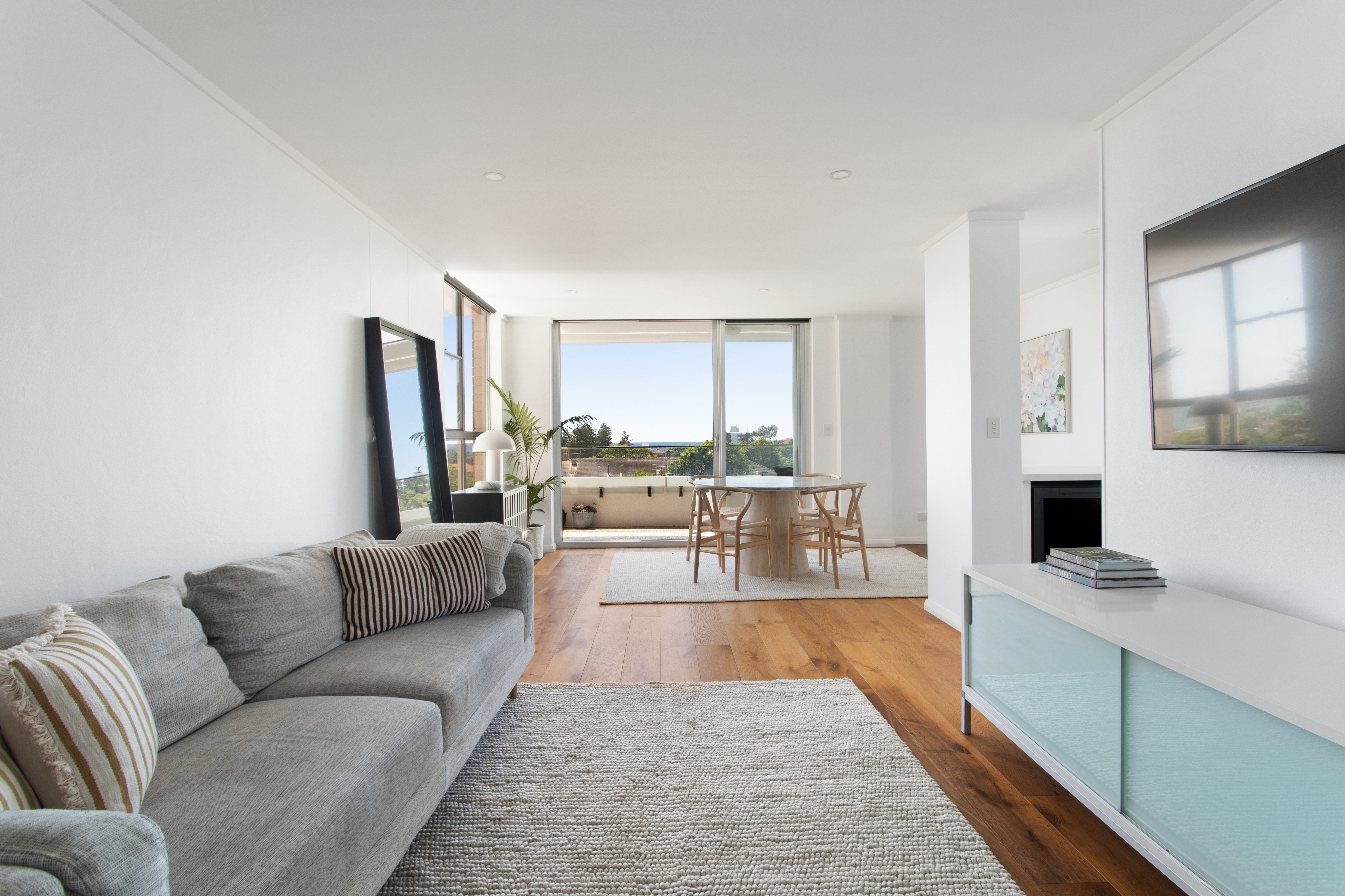 Showcasing an immaculate renovation and breathtaking ocean panoramas, this excellent apartment offers a stunning gateway into beachside living. Demonstrating an alluring contemporary charm, the generous open-plan living and dining area is designed to capture an incredible sweeping view of Dee Why Beach, extending out to the ocean. This flows seamlessly out to a picturesque balcony, providing a beautiful vantage point to enjoy a morning coffee and watch the sunrise.