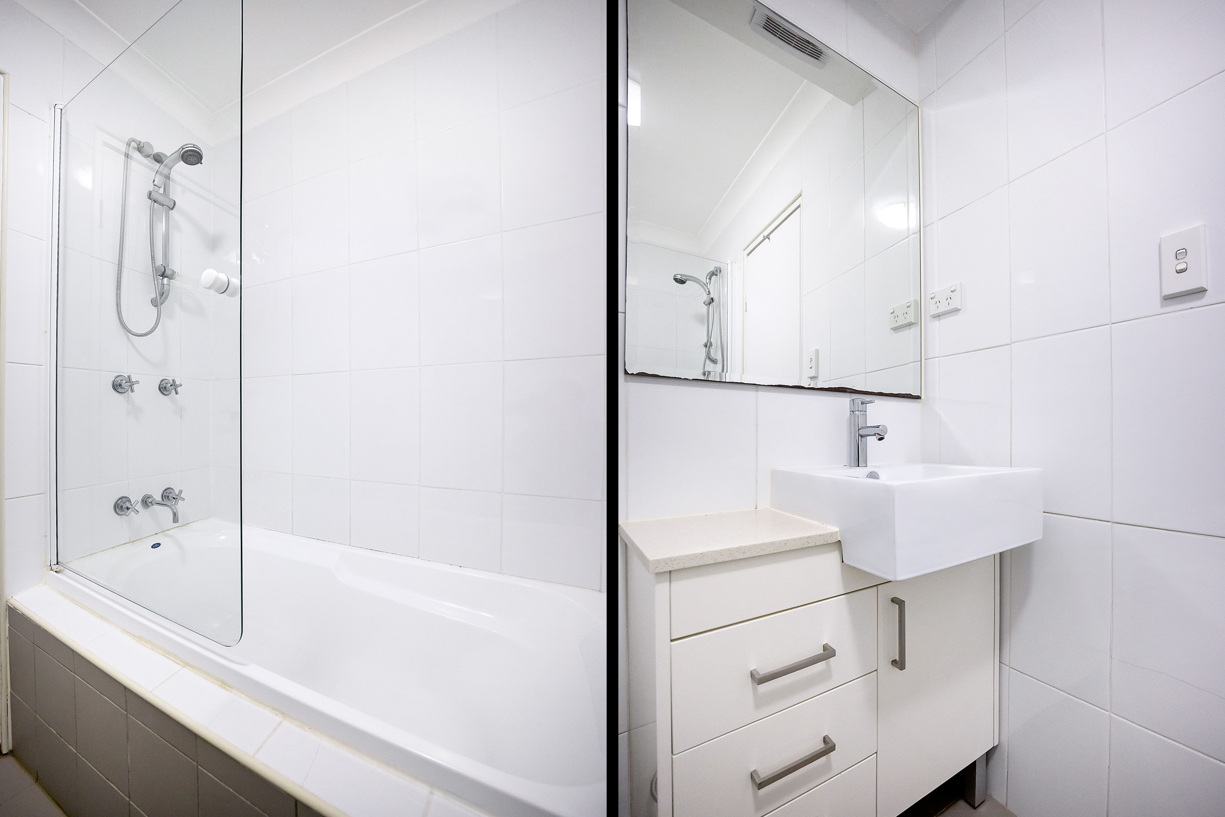 – Fully tiled bathroom with shower over bath, discrete internal laundry