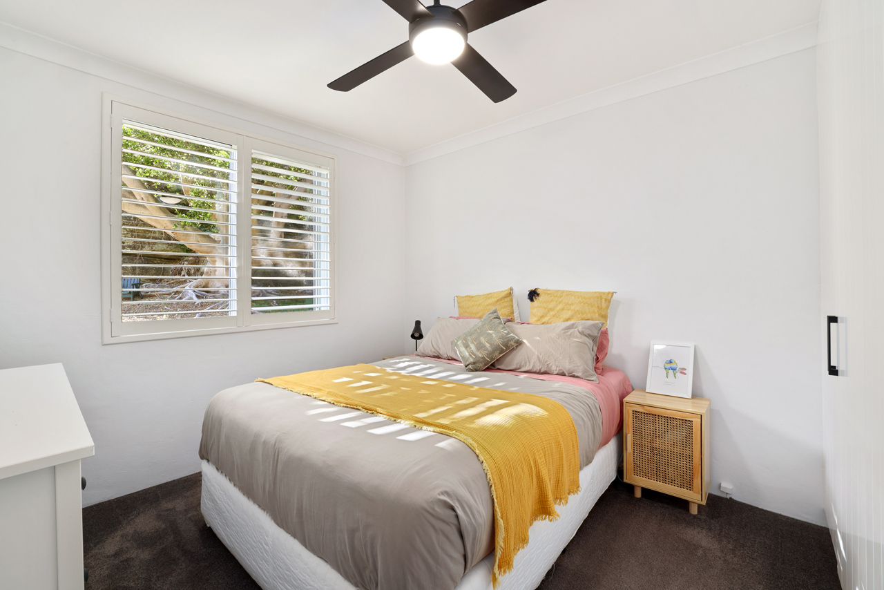 Retreat to the spacious bedrooms equipped with ceiling fans and built-in wardrobes for a peaceful night’s sleep. The tidy bathroom offers both a separate shower and bath, perfect for unwinding after a day at the beach.