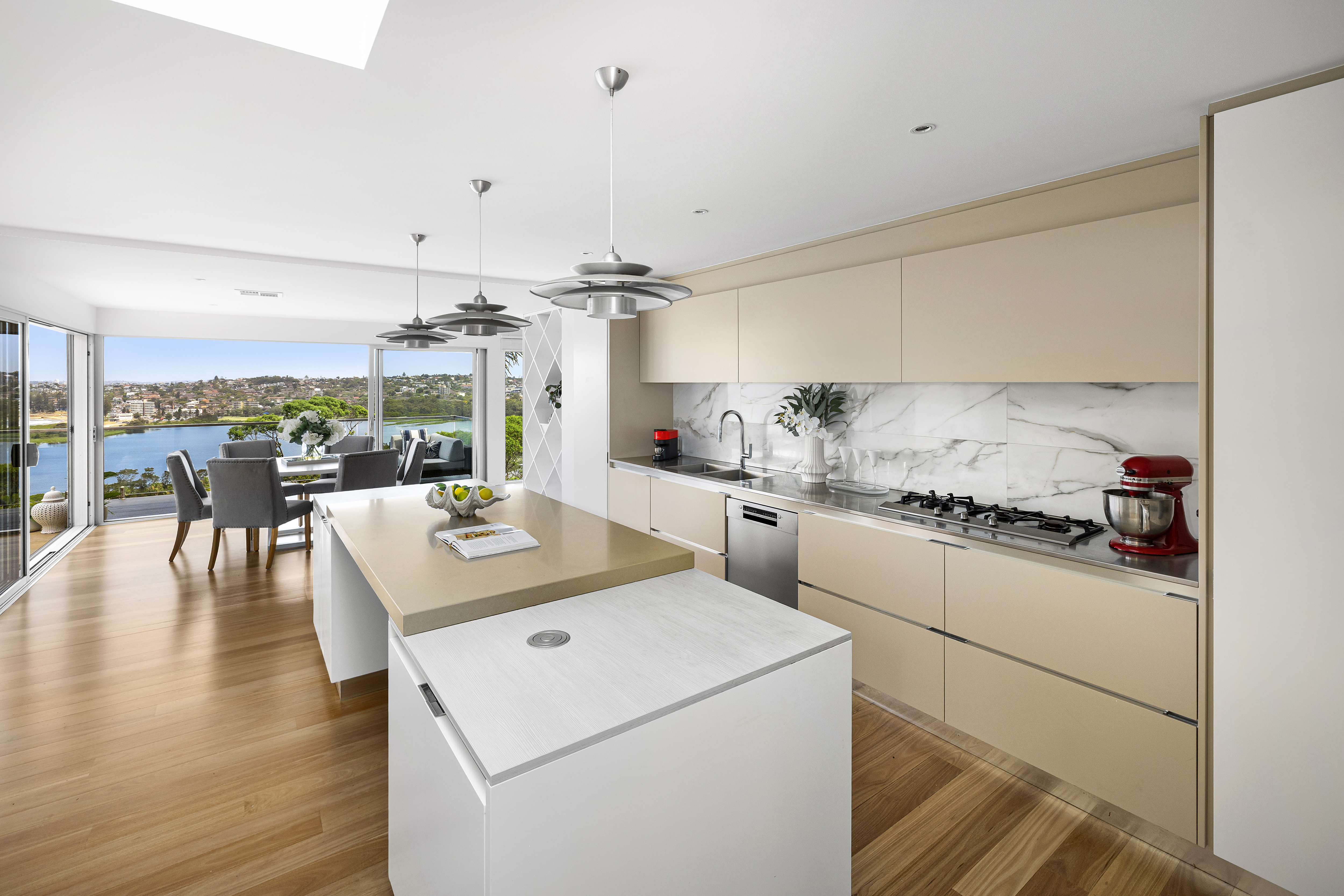 * Light-filled living and dining spaces with coastal outlooks