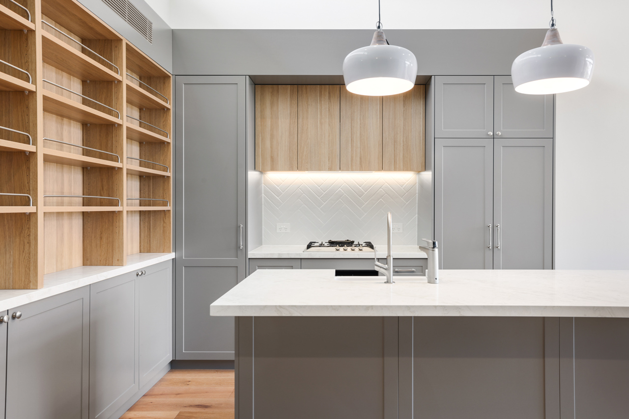 – Stunning kitchen with stone bench tops & island bench