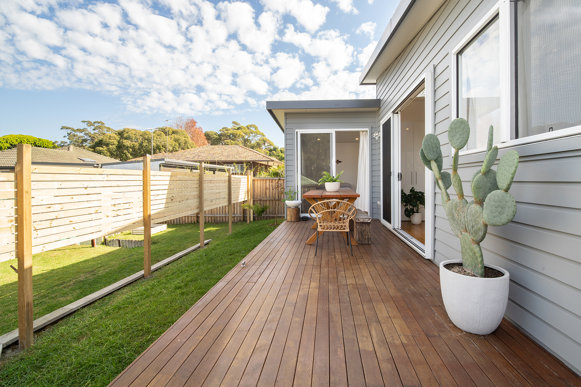 – Bright combined living & dining opening to entertaining deck & grassed area