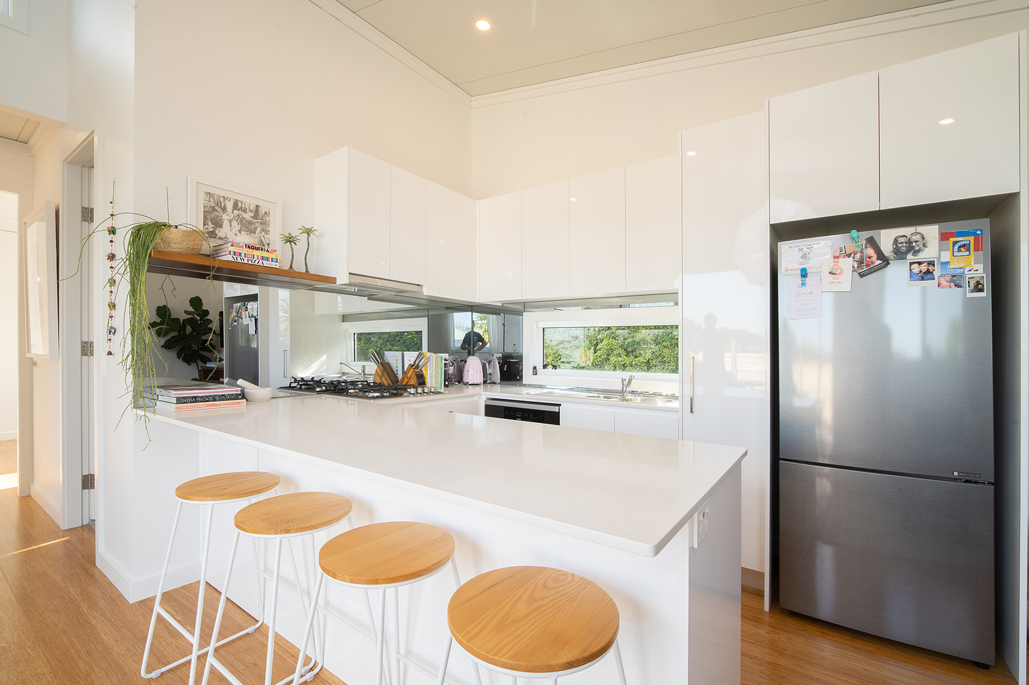 – Open plan kitchen with gas cooking, dishwasher & breakfast bench