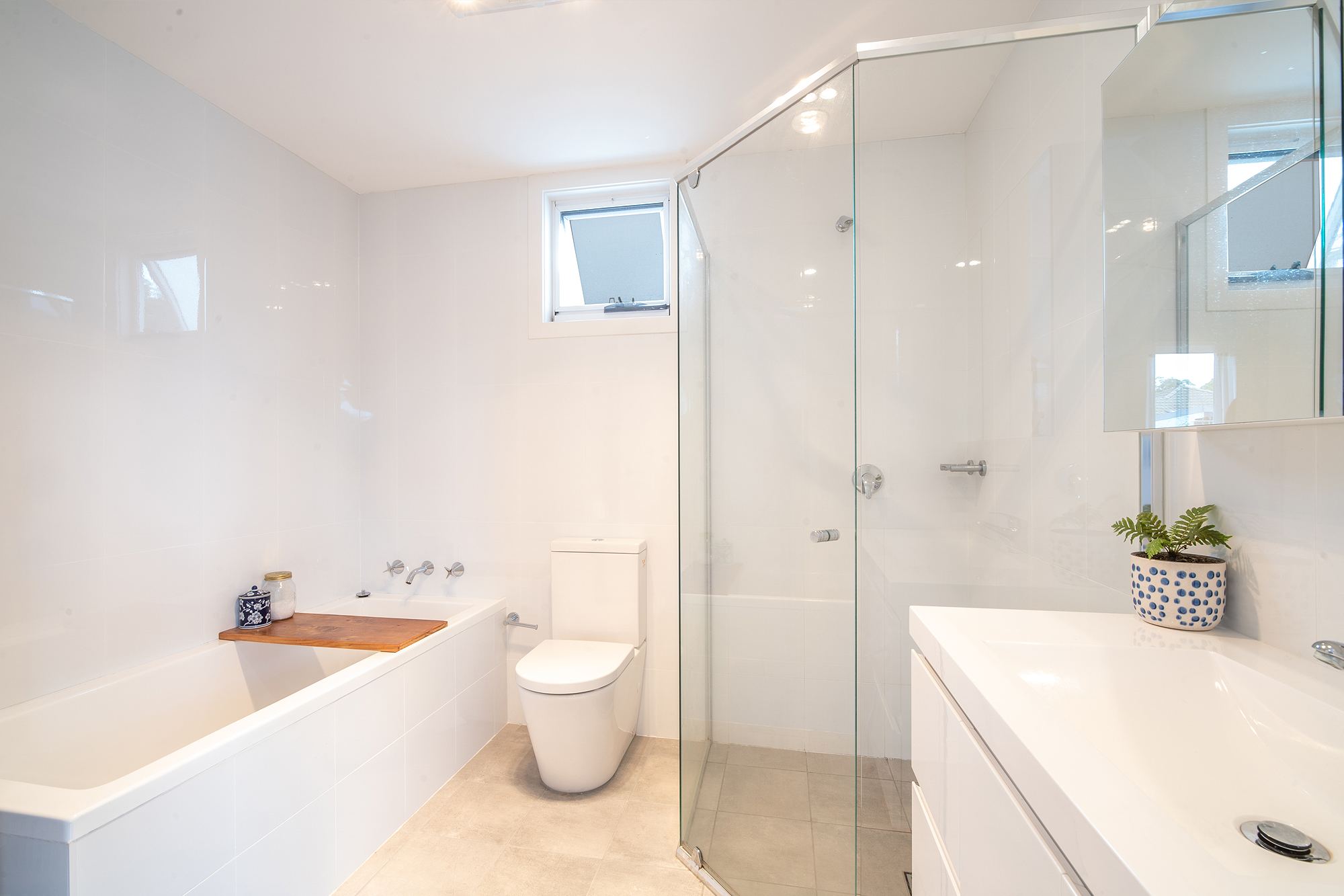 – Full bathroom with floor-to-ceiling tiles