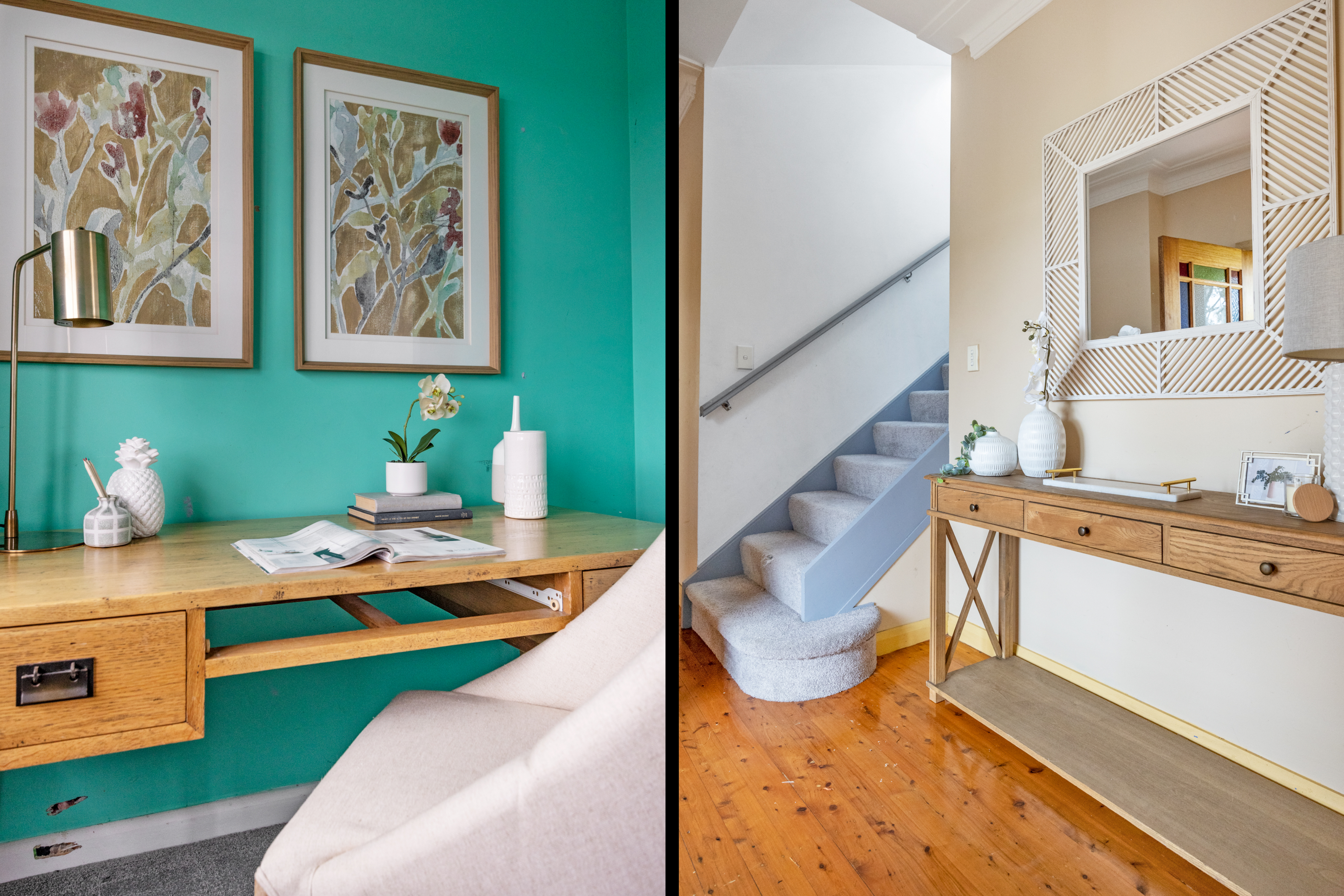 – Two upstairs bedrooms with built-ins and study, bright bathrooms