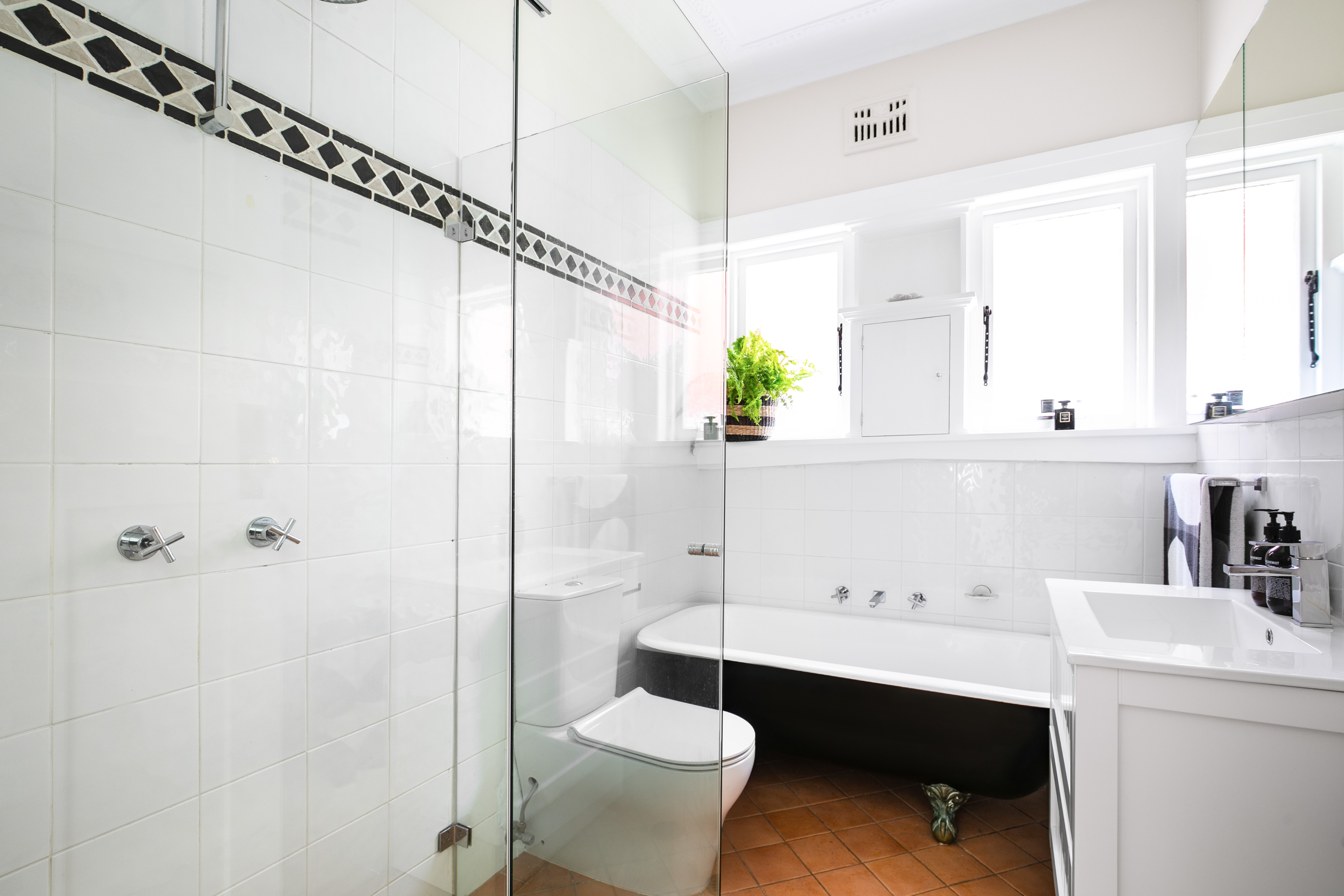 – Timeless main bathroom with clawfoot bath, sleek second bathroom/laundry