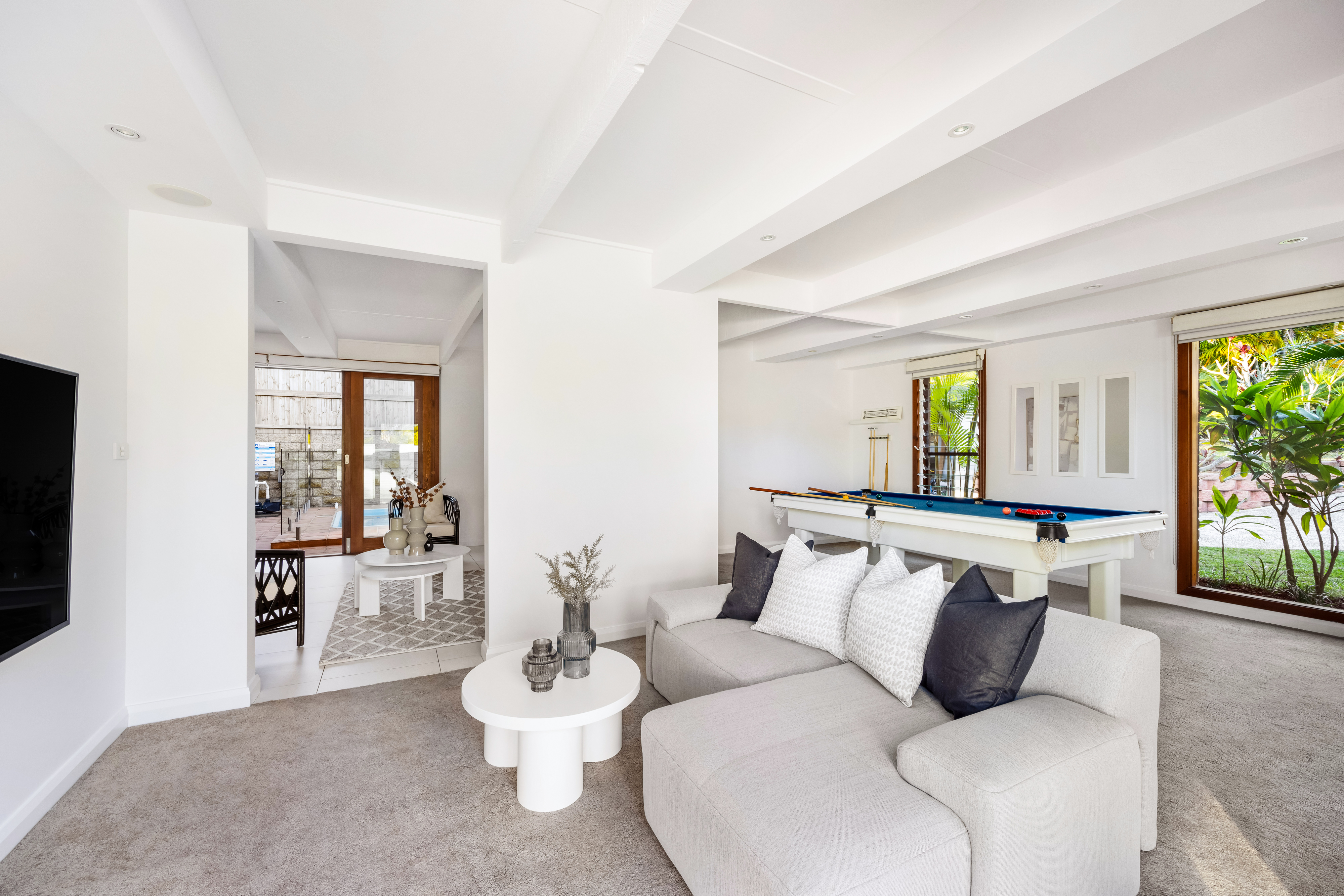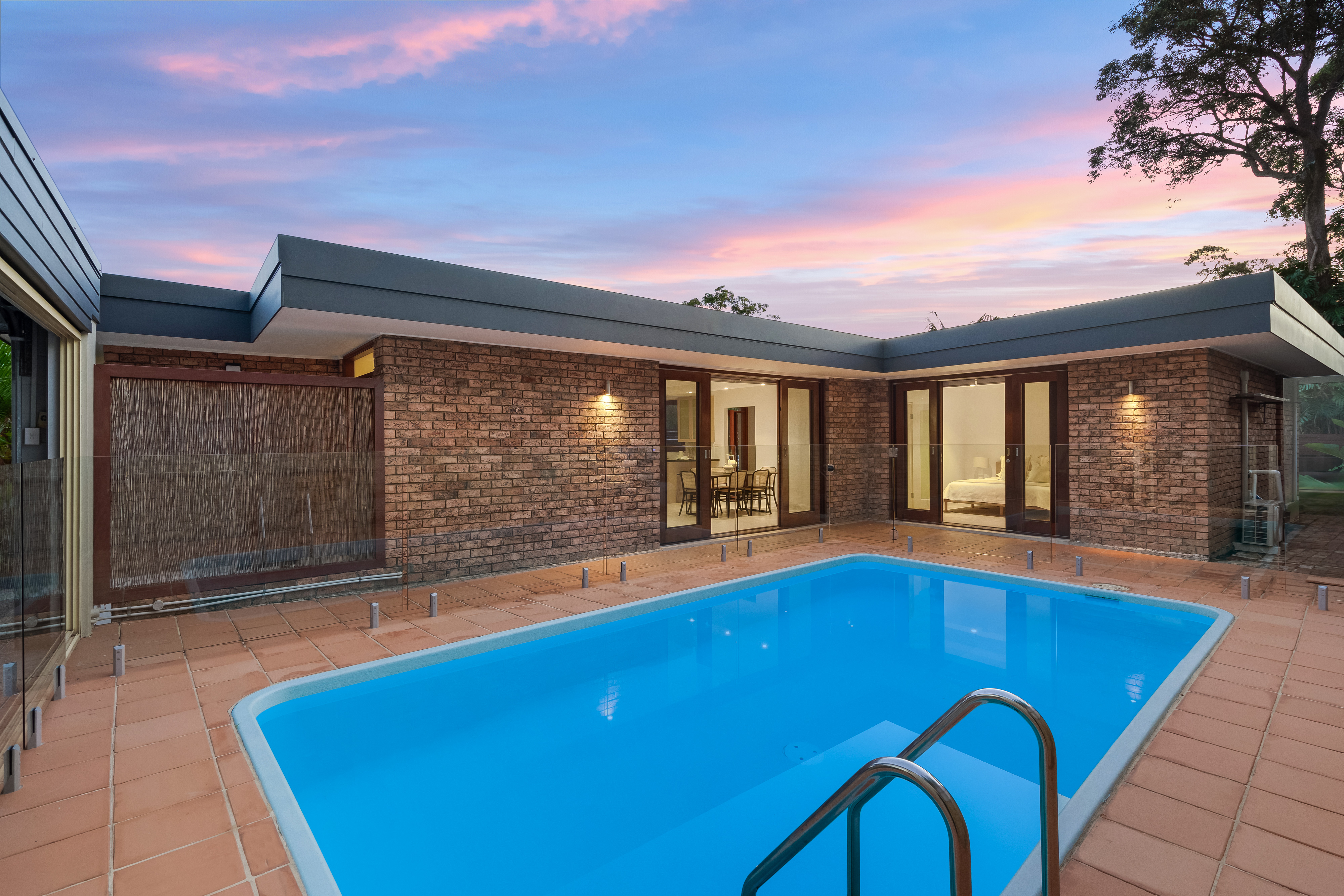 Hidden from the street behind lush tropical gardens, this beautifully crafted single-level residence provides a luxurious and carefree family sanctuary with spectacular entertaining areas. Superbly designed with two generous living and dining spaces and sumptuous contemporary finishes, it flows to a north-facing poolside terrace and rear entertainers’ patio. Placed with near-level easycare lawn, its peaceful and private setting is within walking distance of schools, village shops, St Matthews Farm Reserve and the popular Narrabeen Lagoon circuit.