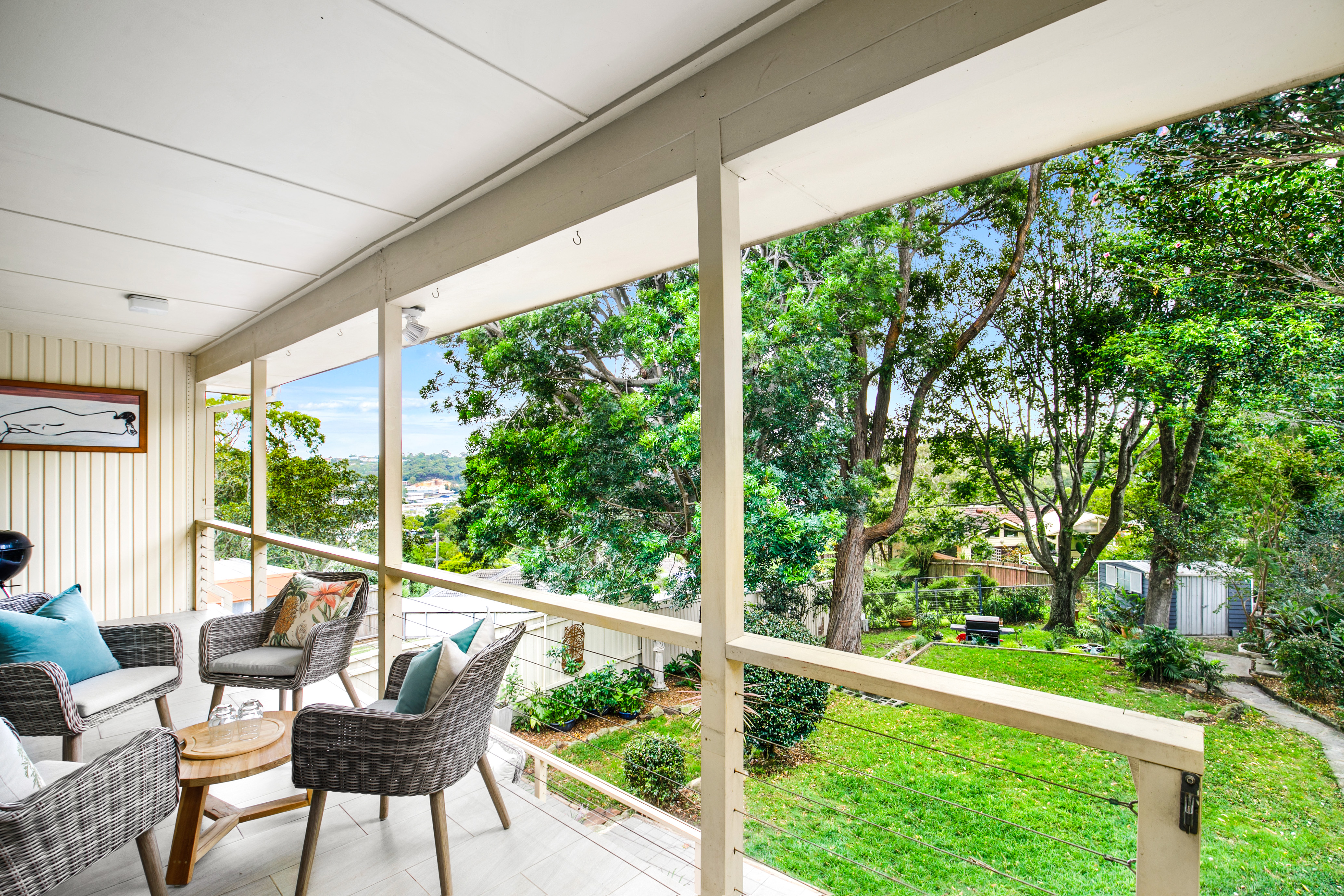 Spacious interiors are complemented by polished timber floors, high ceilings and picturesque leafy outlooks.