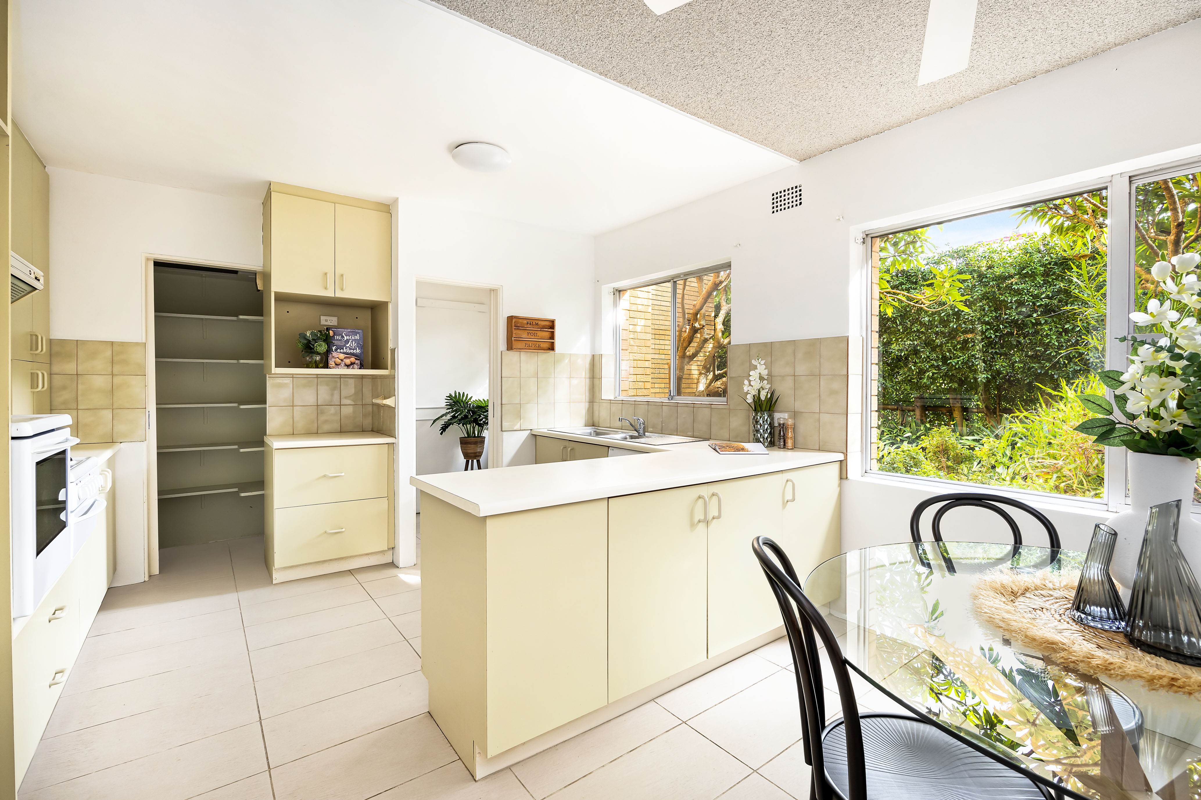 – Spacious kitchen with dishwasher, generous cupboards, pantry and dining area