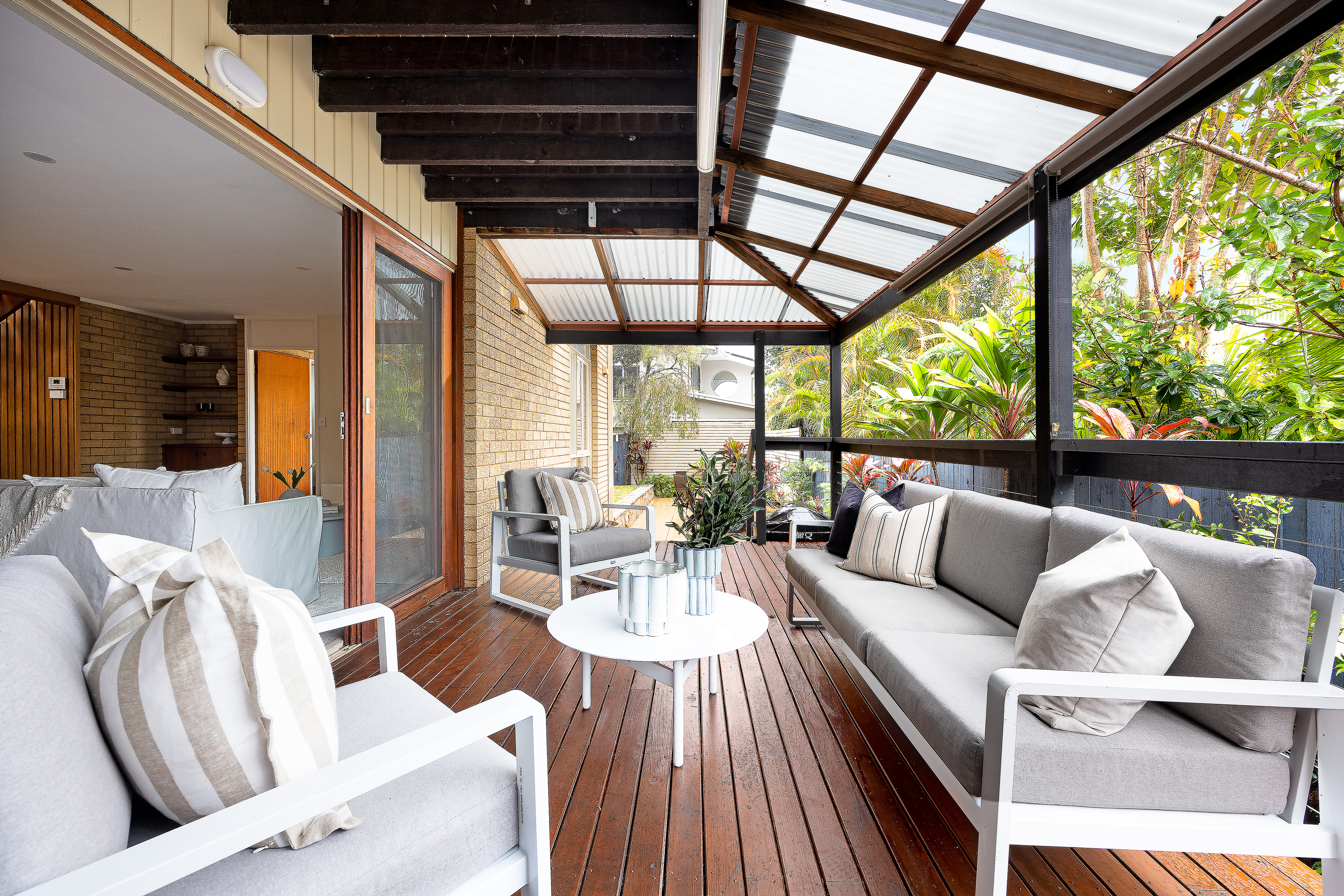 • Generous living space flows to a covered entertainers’ deck and the rear garden