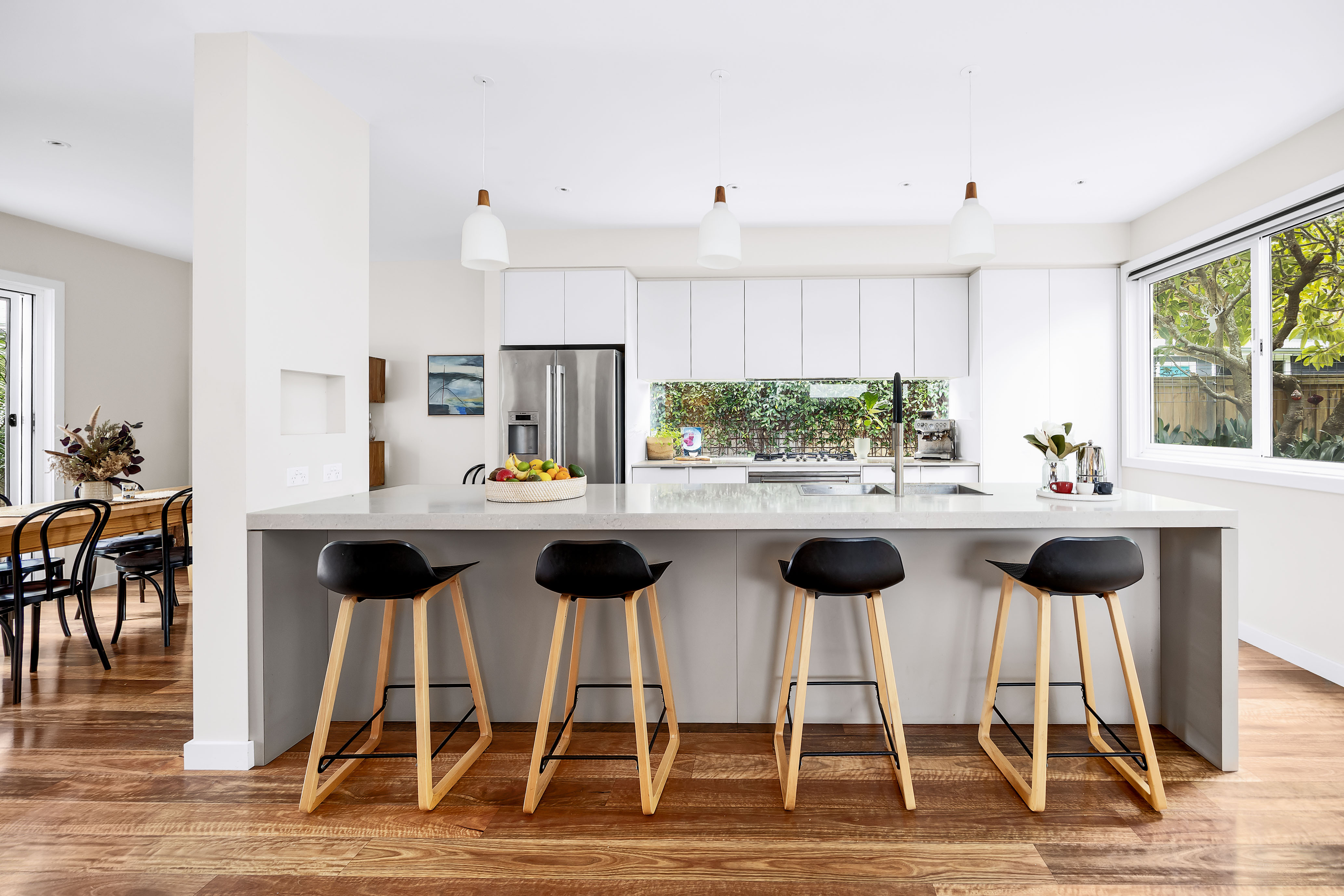 – Gas cooktop, 900mm oven, microwave and integrated dishwasher