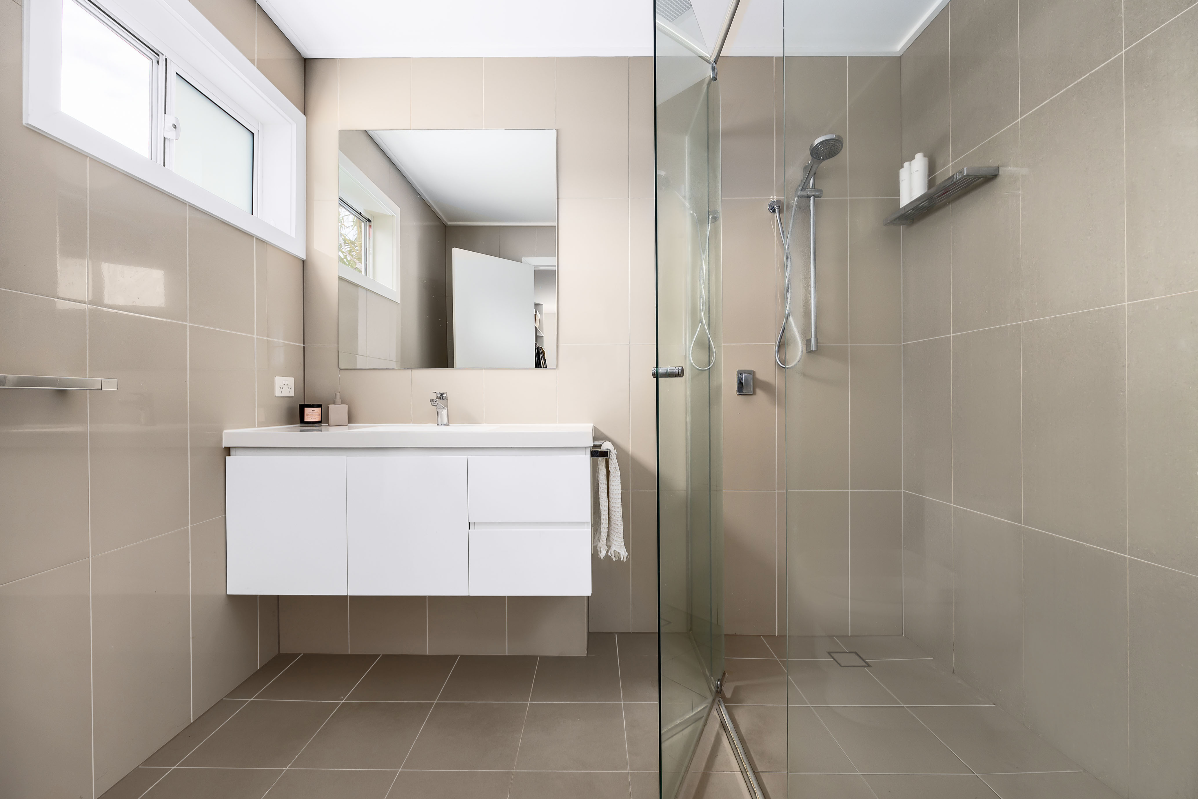 – Powder room on entry level, timber flooring and plantation shutters