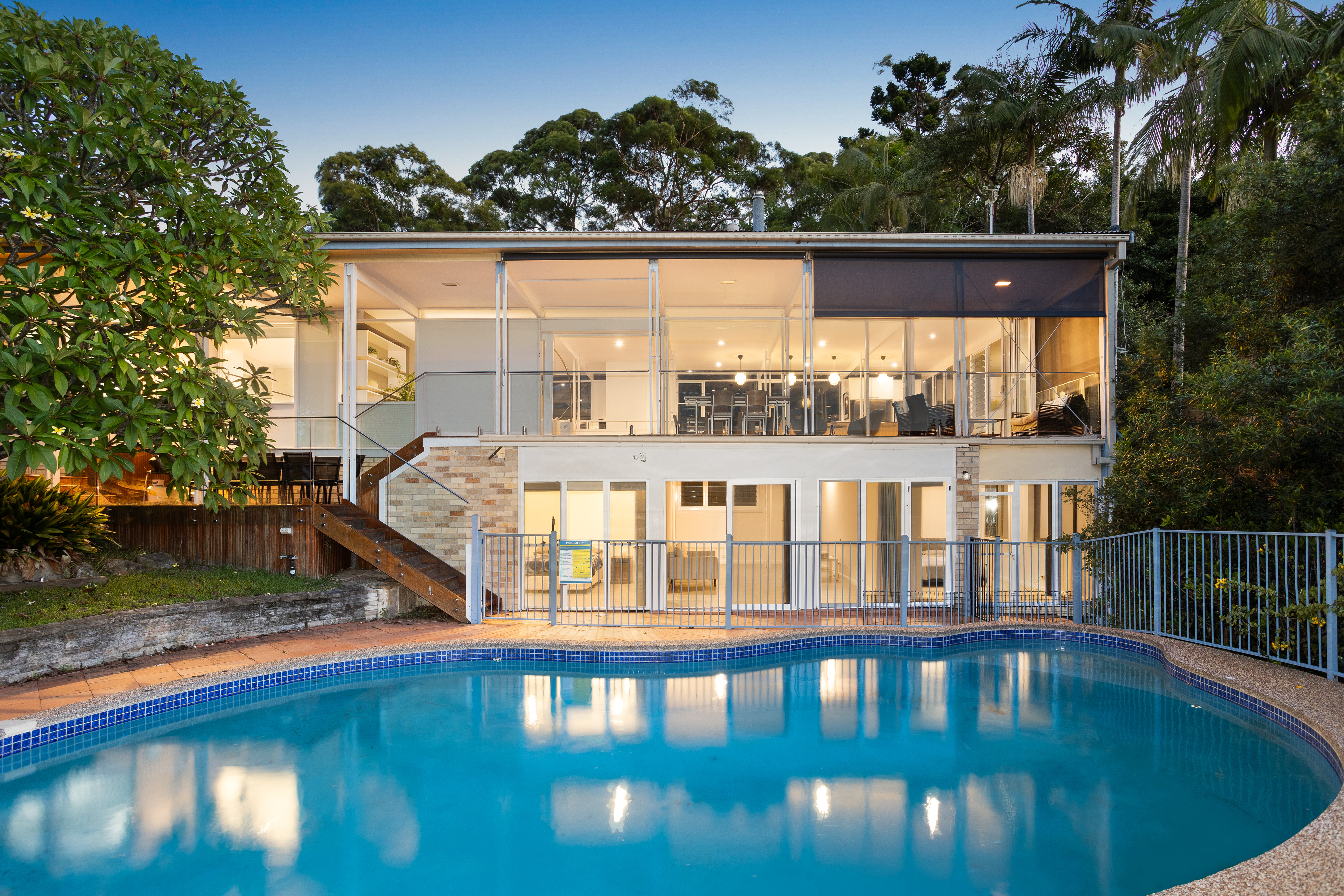 Nestled amongst the trees at the end of a whisper-quiet cul-de-sac, with a sunny, near-level rear lawn and a sparkling in-ground pool, it is only 220m from a grassy waterfront reserve and the lagoon trail, and just a short stroll to Narrabeen Lakes Public School and Narrabeen Beach.