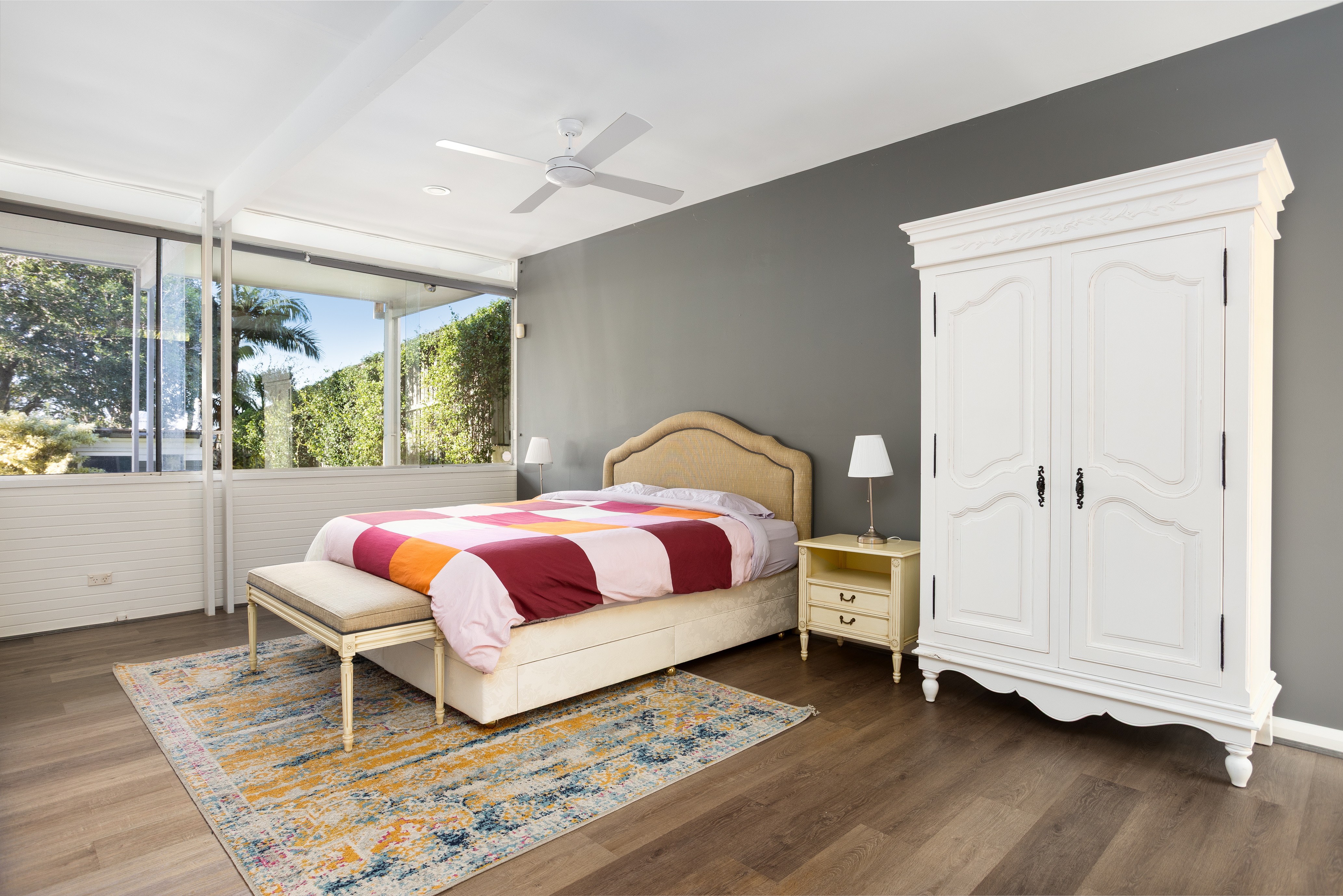 * High ceilings, engineered timber floors, ducted air-conditioning, and gas heating outlets