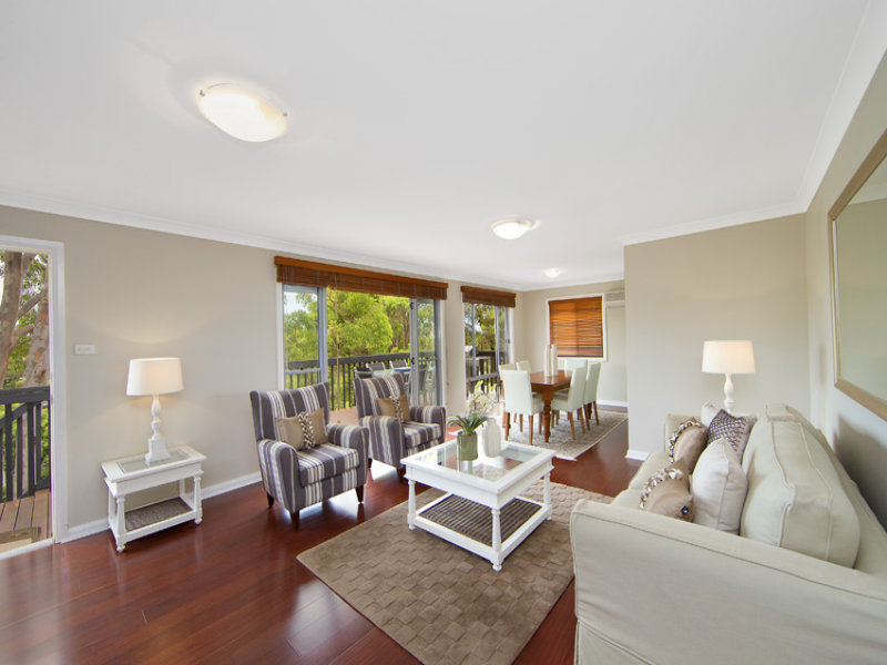 From an elevated setting on the high side of the street, this superbly crafted home reveals sweeping leafy district views and ocean cameos. Soaring over three levels with living spaces, bedrooms and bathrooms on each, it provides a luxurious and versatile haven with private spaces for all the family.