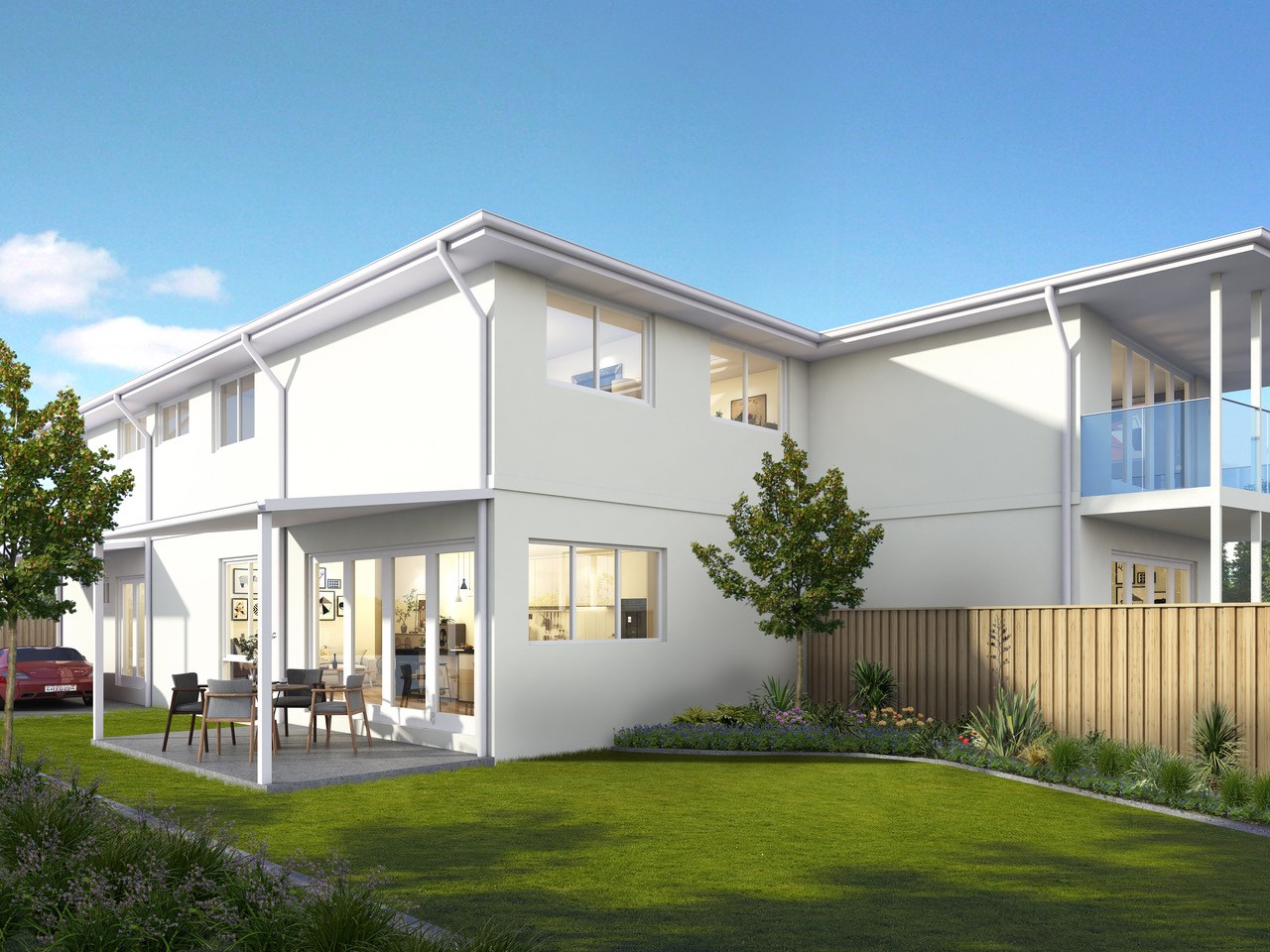 Currently under construction and set in a peaceful cul-de-sac, this impressive new duplex delivers contemporary family living in a wonderfully quiet setting. Enjoying a prized north-facing aspect and backing directly onto open playing fields, the home captures abundant natural light while offering a rare sense of space and privacy.