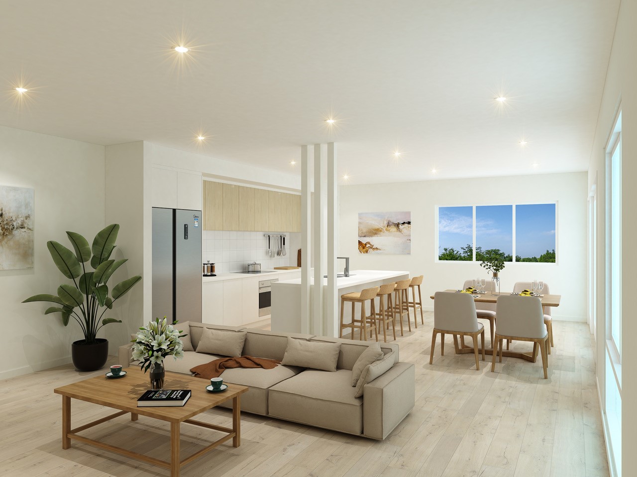 • Contemporary open-plan living and dining areas
