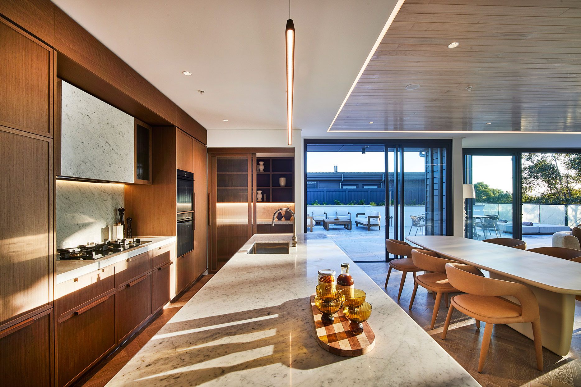 * High-end kitchen with stone benchtops, integrated appliances & ample storage