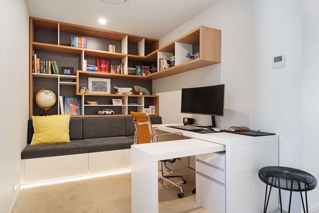 – Study area upstairs with built-in bench storage