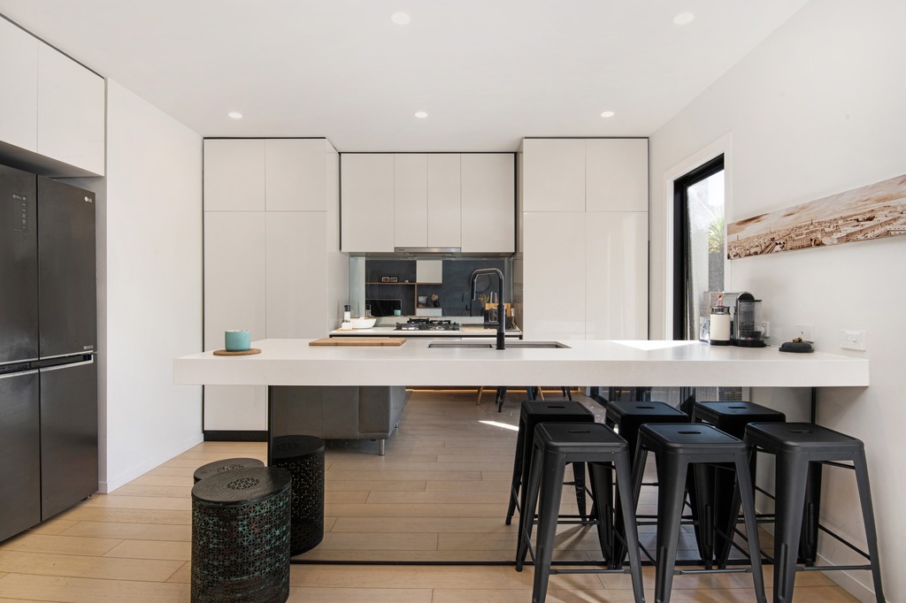 Boasting an instantly striking facade, this contemporary home offers a sophisticated design with premium inclusions, providing a low-maintenance, designer lifestyle. Architecturally crafted, this dual-level residence maximizes space, featuring multiple living areas and a seamless flow to a private outdoor entertaining deck. With plantation shutters, wood floors, and a thoughtful layout, this home embodies modern elegance in a family-friendly neighbourhood.