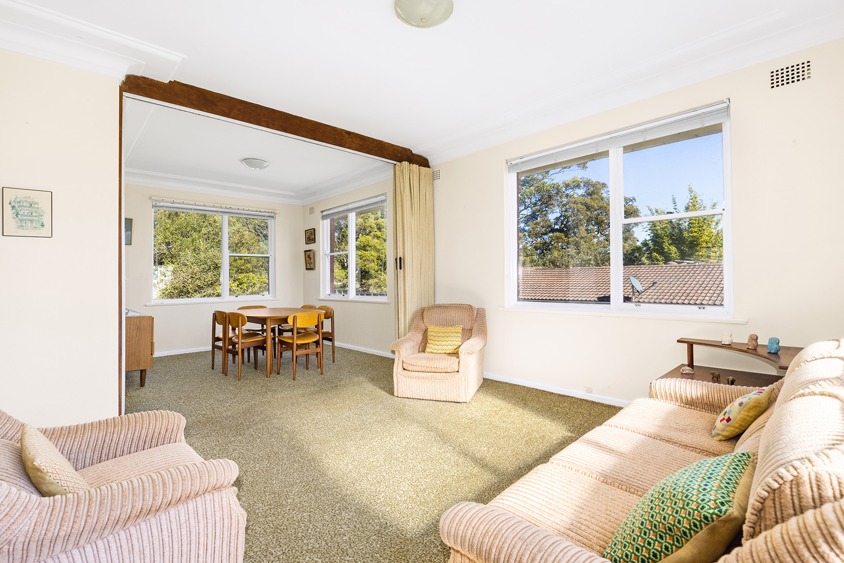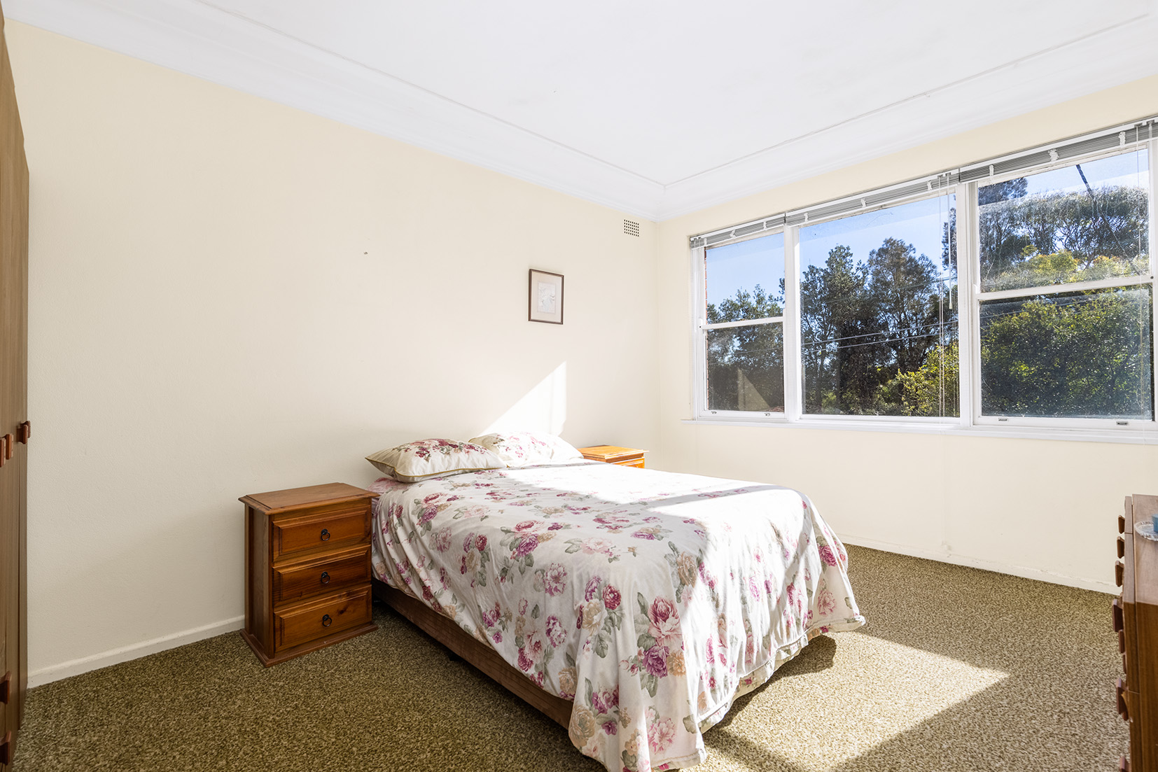 – Classic charm, high ceilings, timber floors beneath carpet