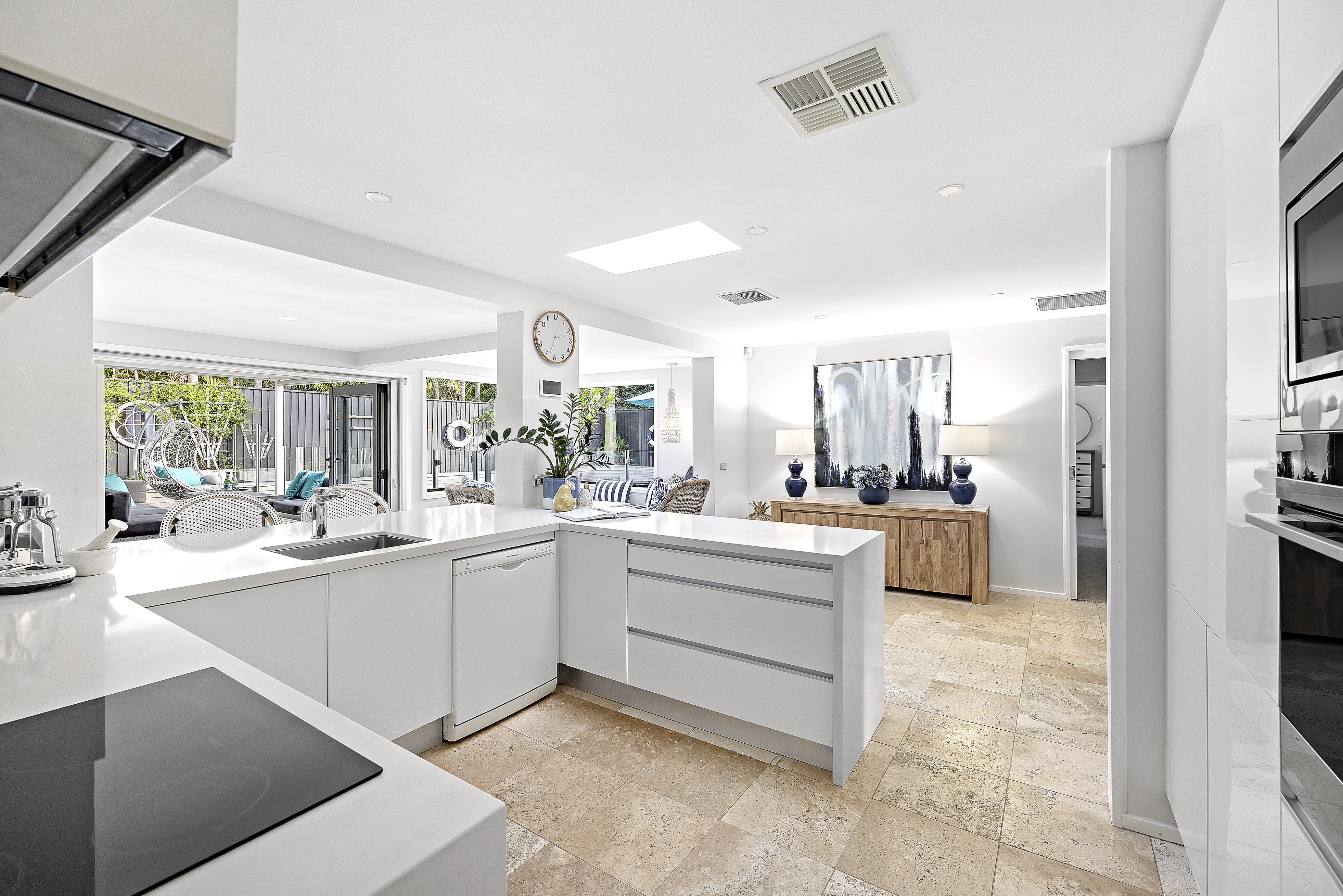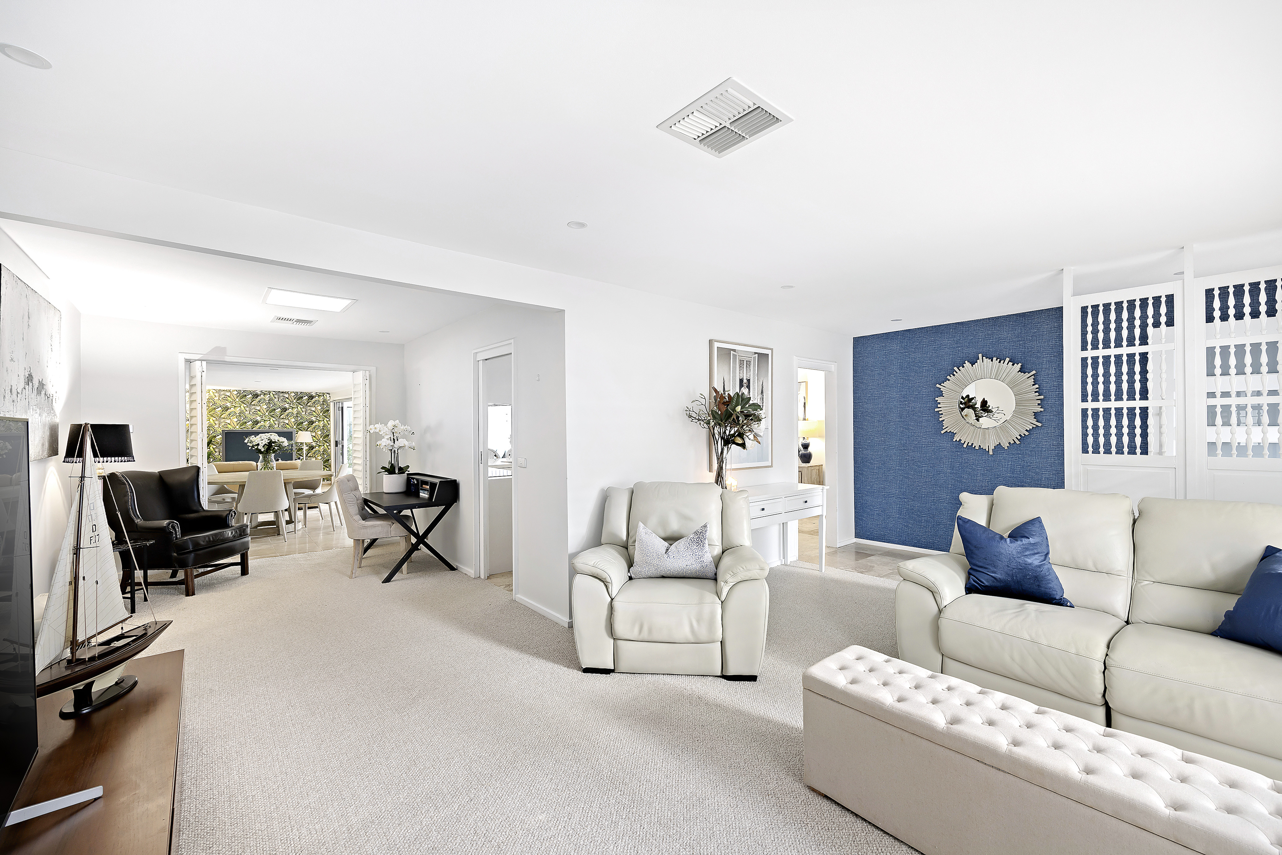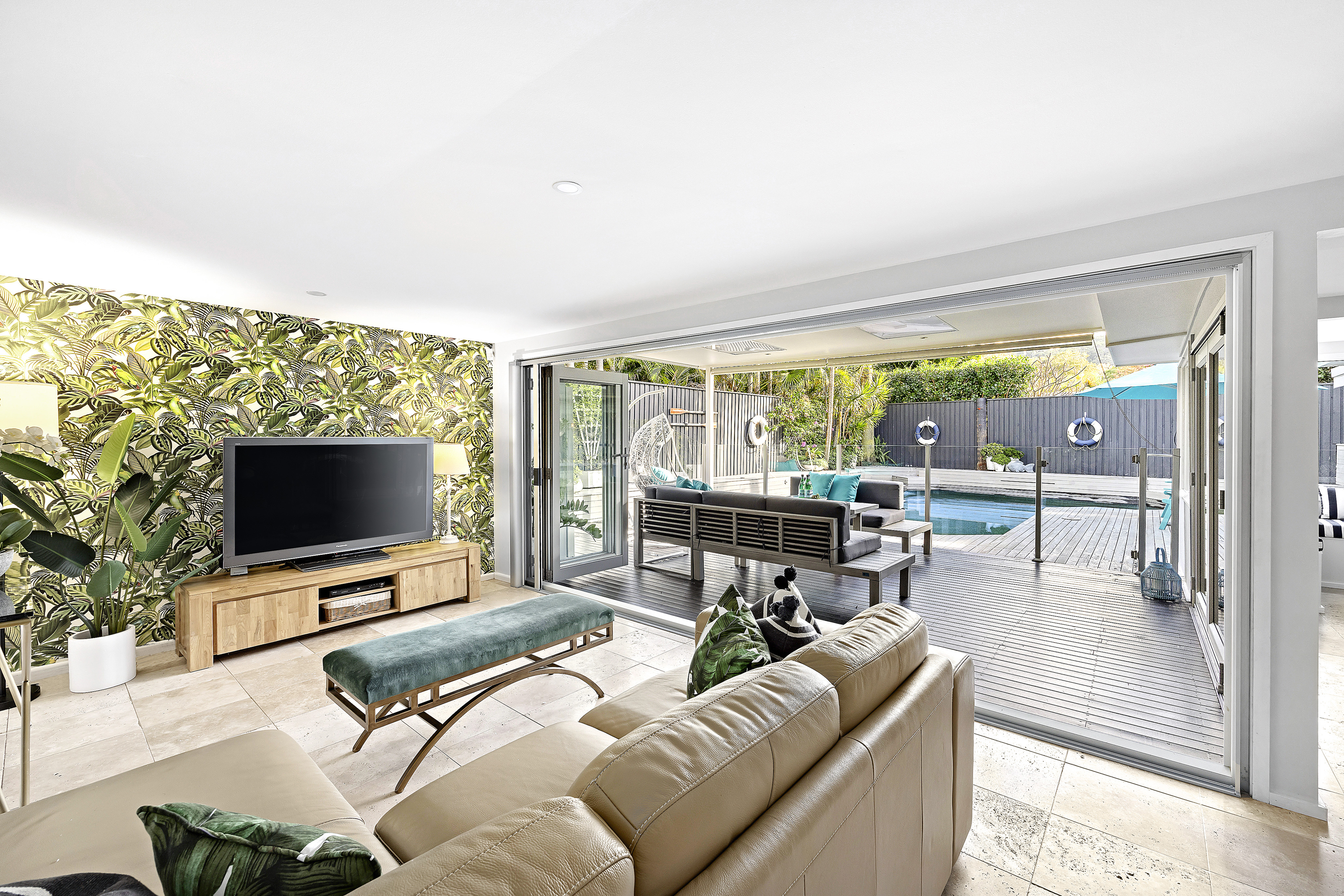 -Three separate interconnecting living/dining spaces extend out via bi-fold doors