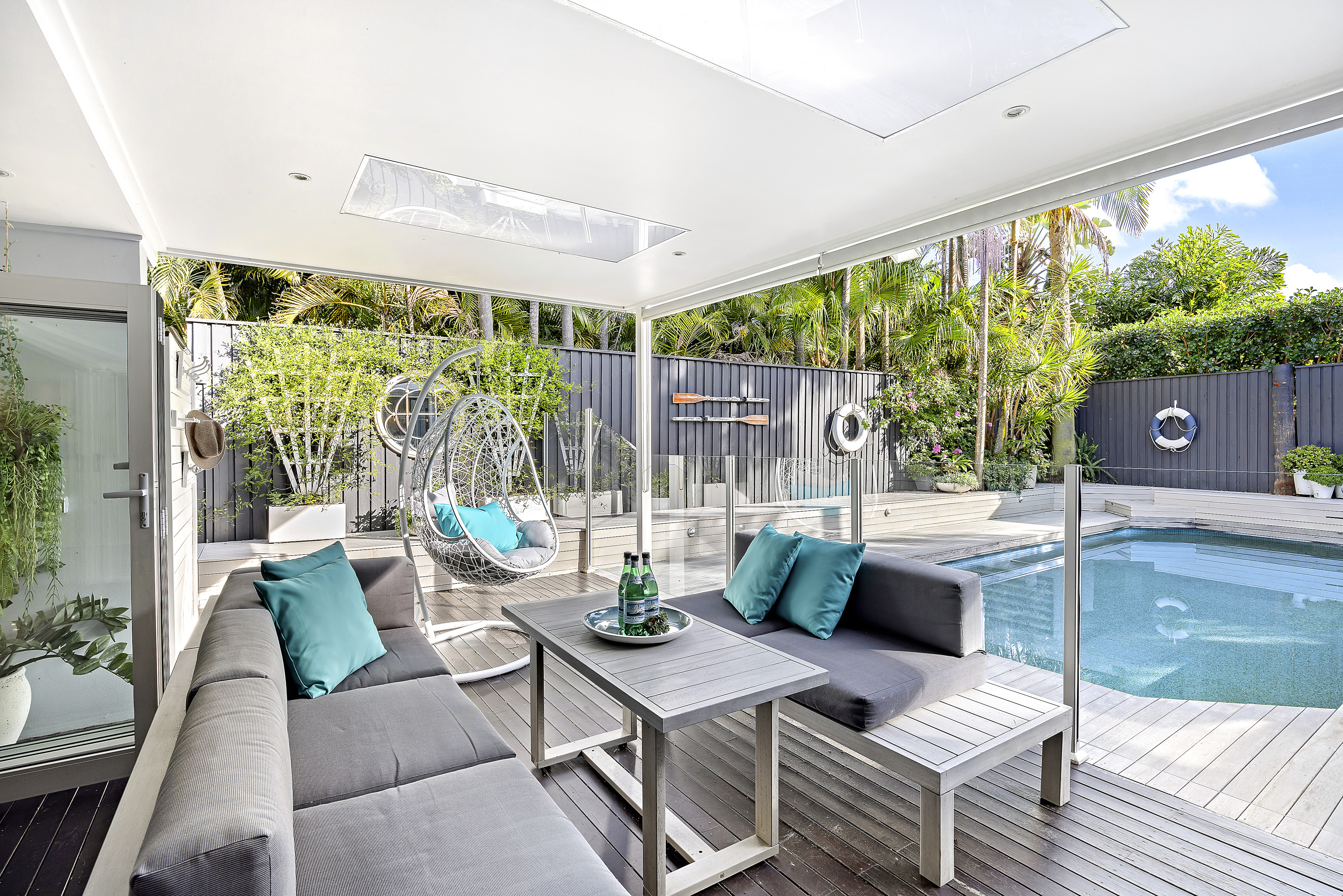 -All-season entertainers deck, in-ground pool, a sequence of spaces for quiet retreat