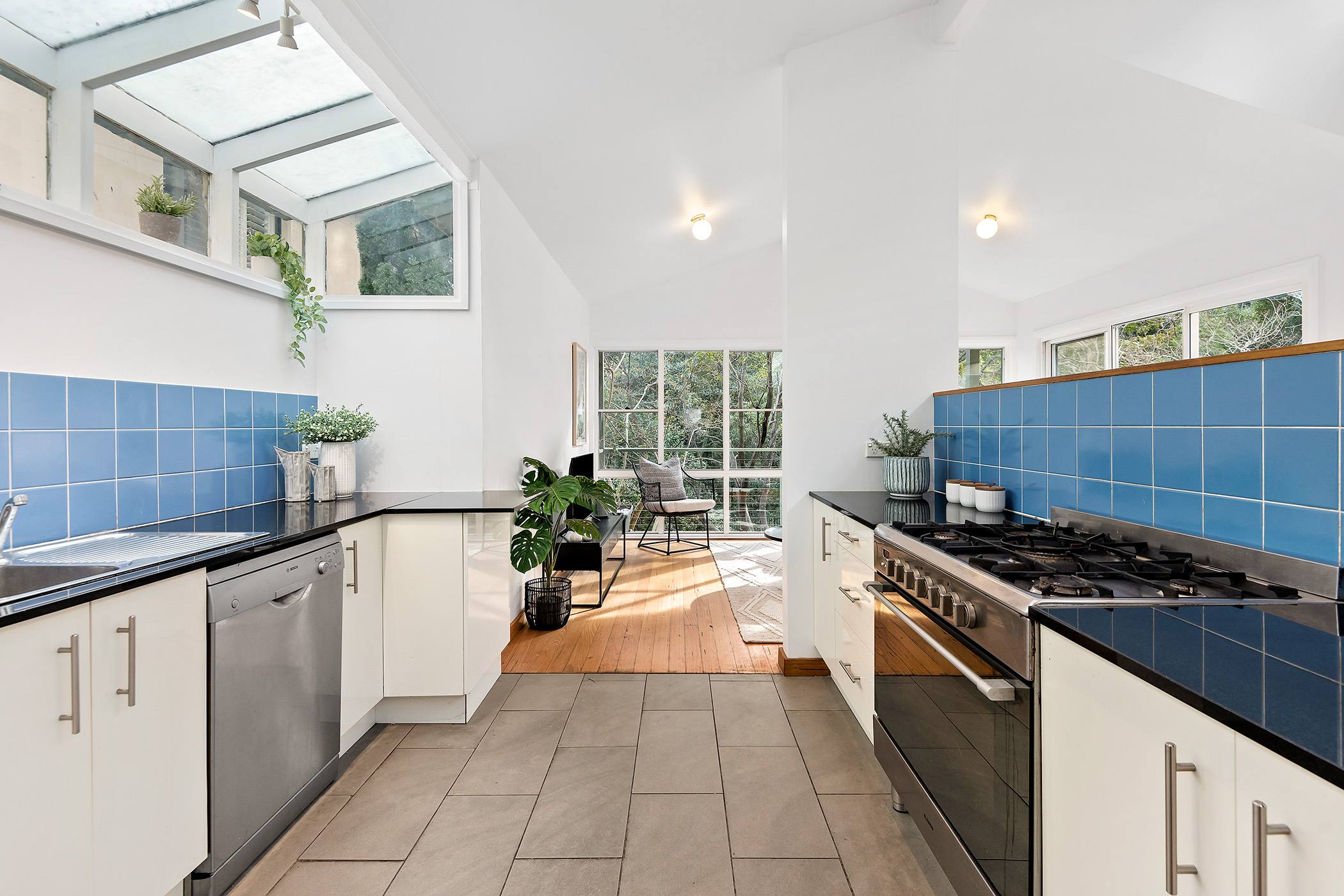 • Updated kitchen with gas cooking, dishwasher, ample cupboard space and skylight