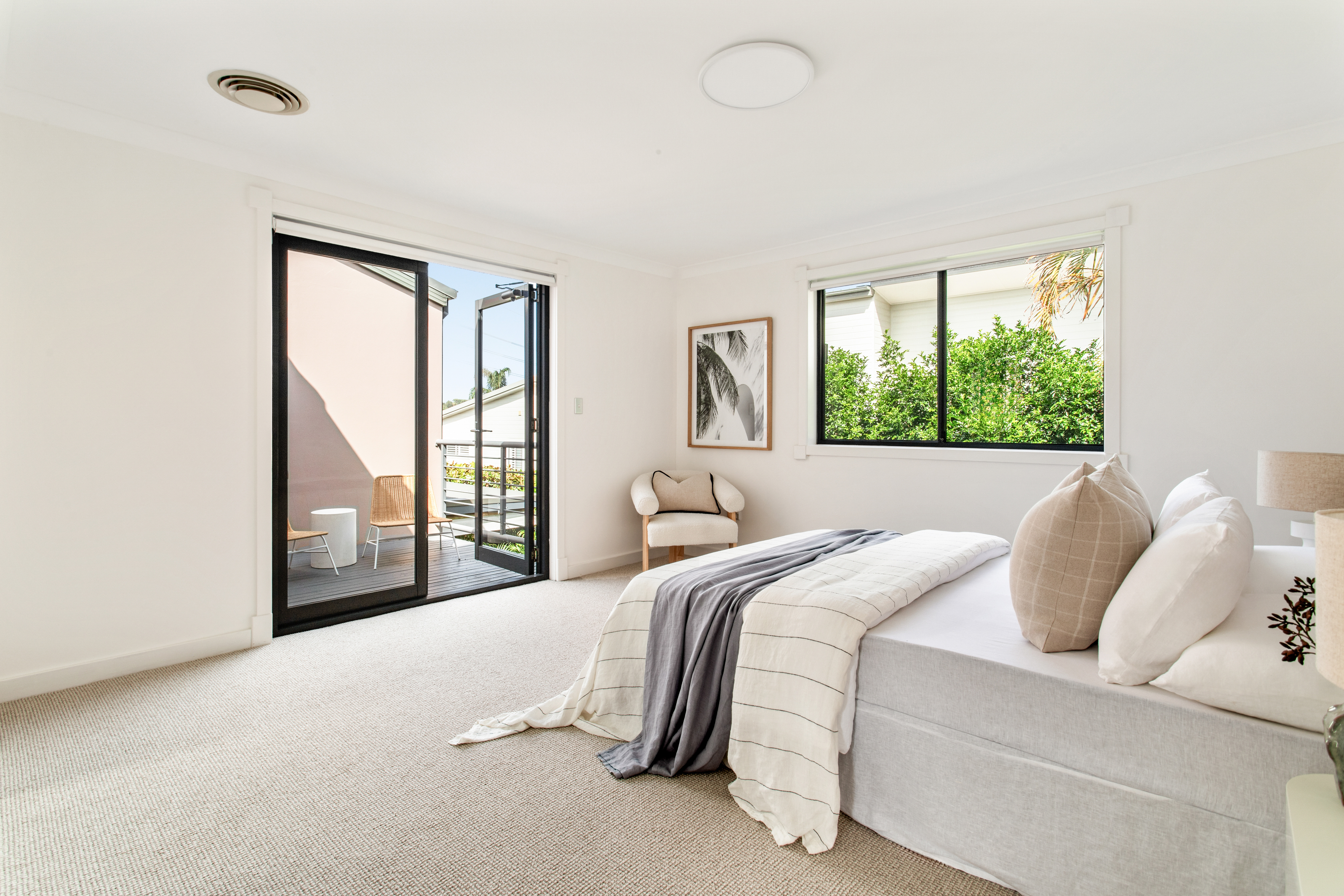 Accommodation comprises two well-scaled upper-level bedrooms, both of which are appointed with fully-tiled ensuites and the master features a separate bath and shower. The second bedroom is appointed with a built-in wardrobe and the master features a walk-in robe and its own private sunlit balcony. Complete with internal access to an oversized secure double garage plus storage, it is exceptionally positioned within a stroll of Mona Vale’s village shops, popular cafés, eateries and public transport as well as quality schools and the golden sands of Mona Vale Beach.