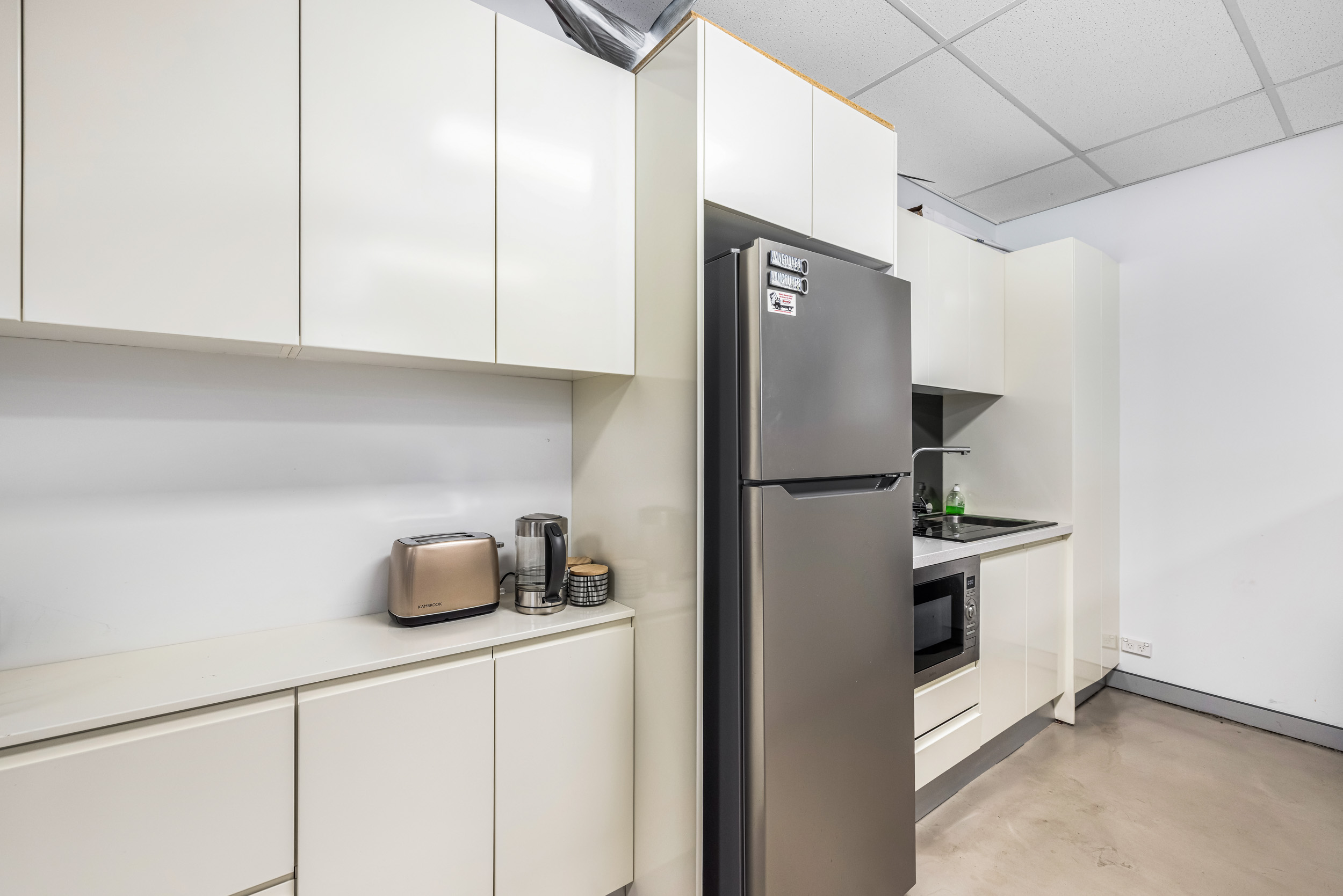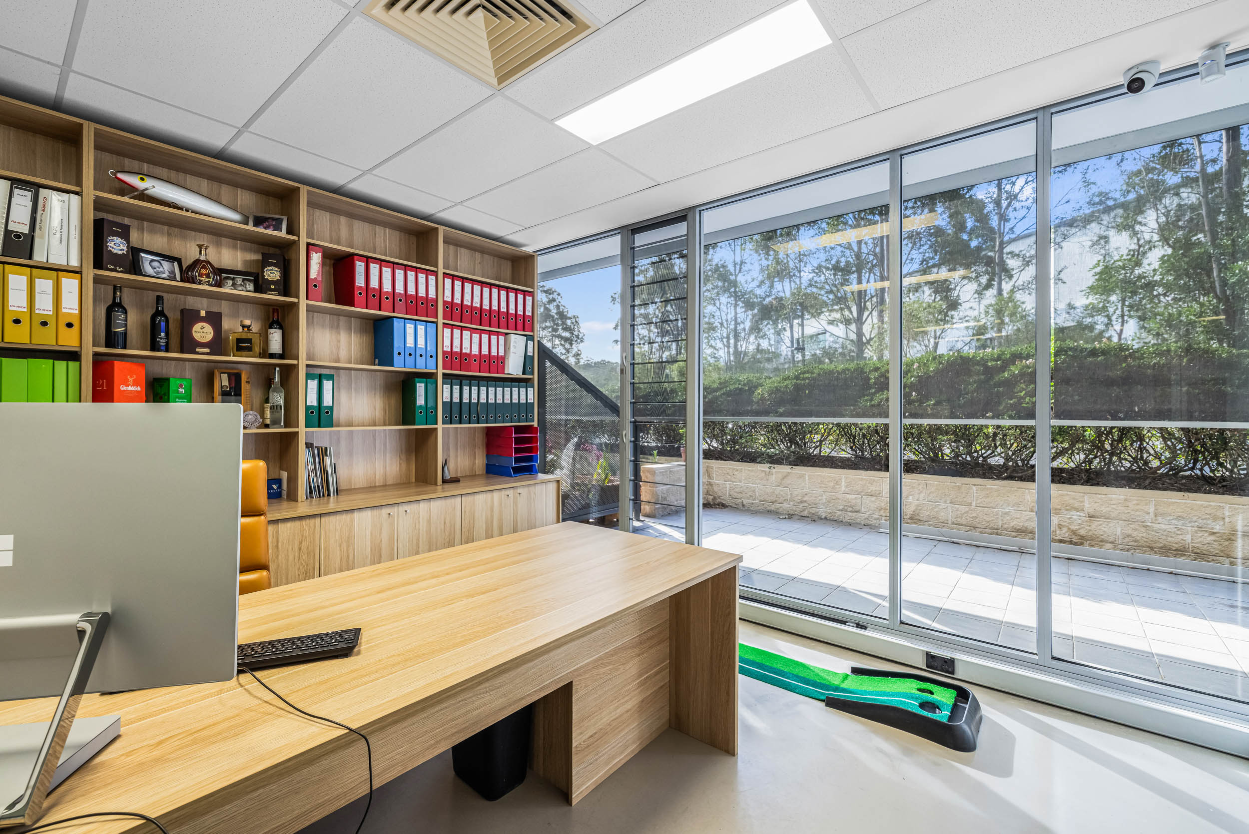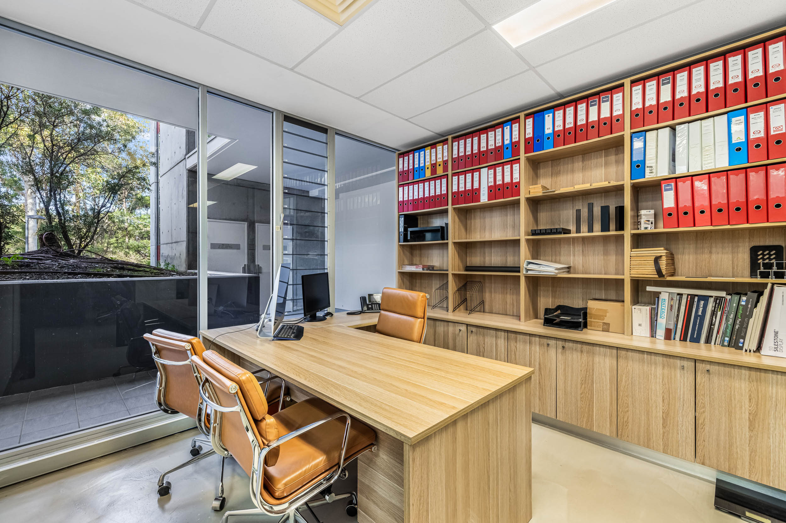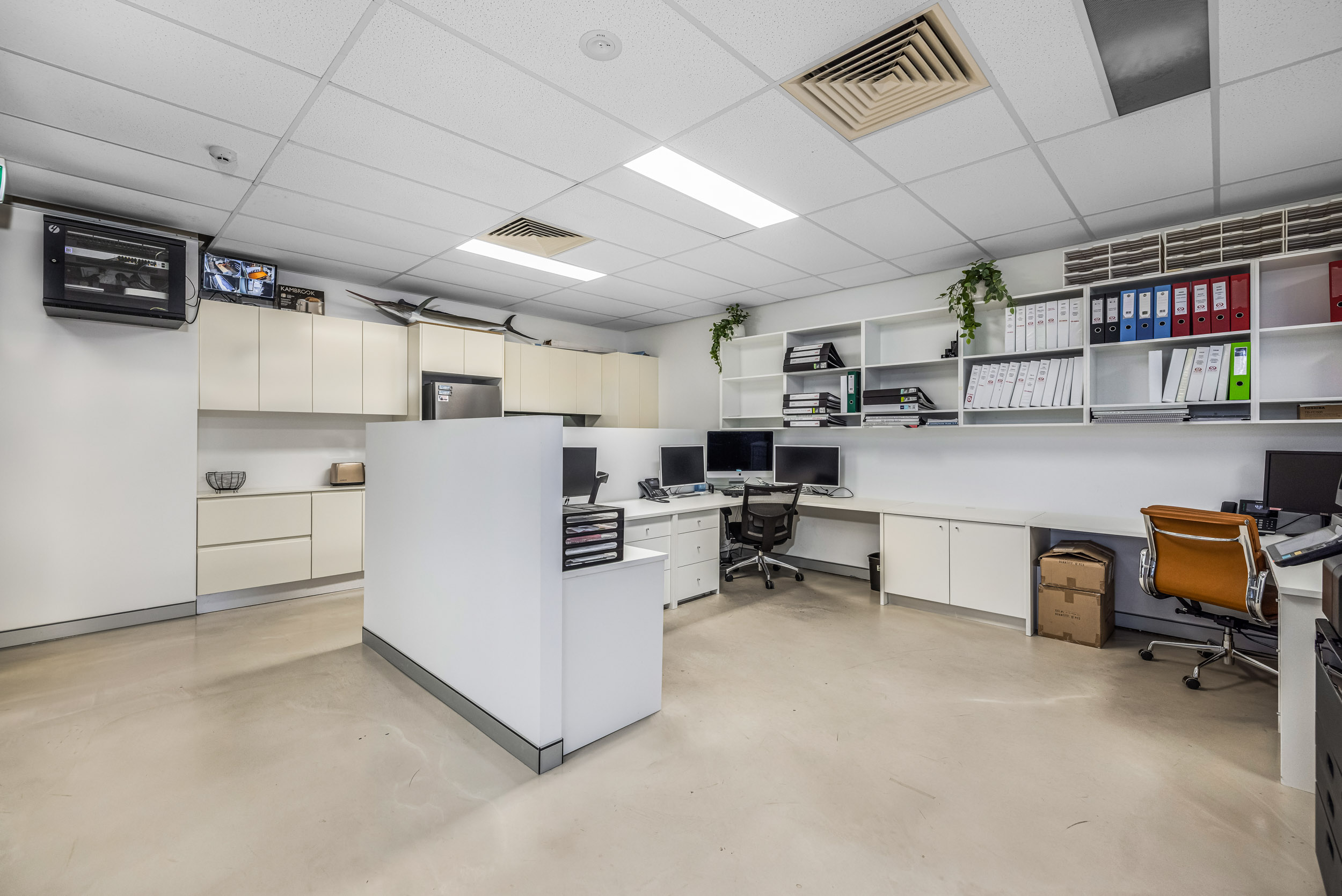 The office boasts polished concrete floors, ducted air conditioning, state-of-the-art kitchenette and top-tier amenities throughout. Features include an alarm system, internal security cameras, communication box and undercover parking for two cars. With its north-west facing orientation, sun louver-protected balcony and excellent natural light, this space is perfect for businesses seeking a high-end, executive feel at a more accessible, local rate.